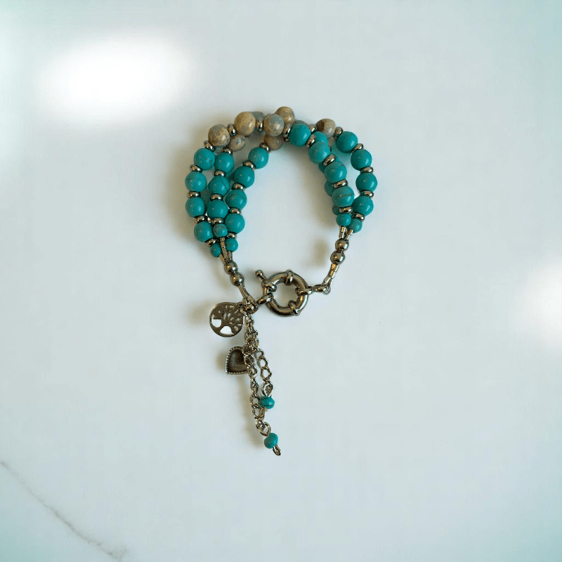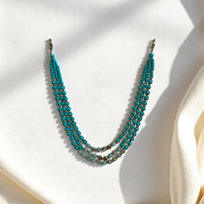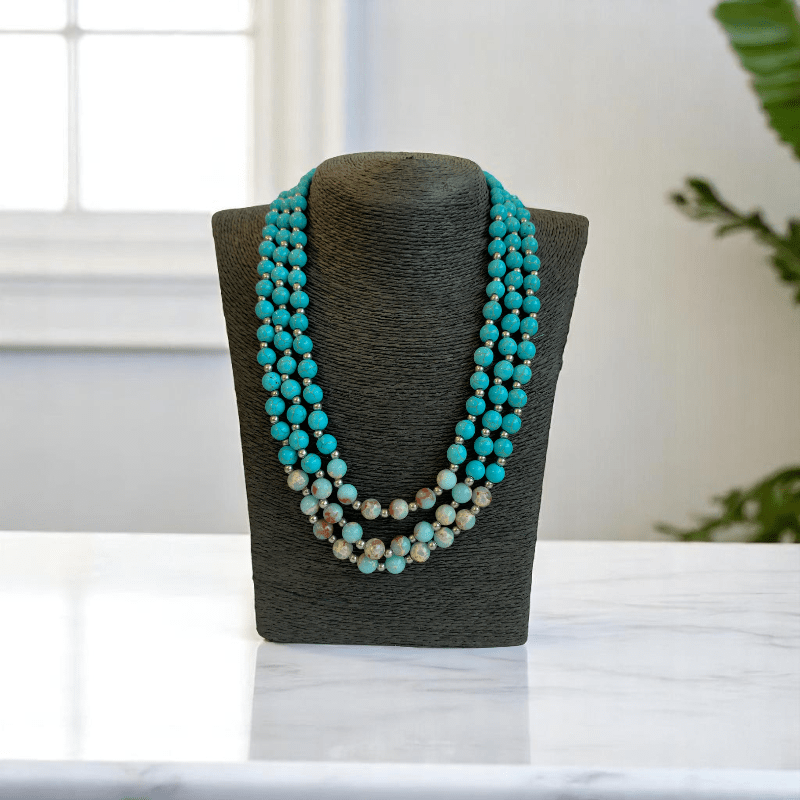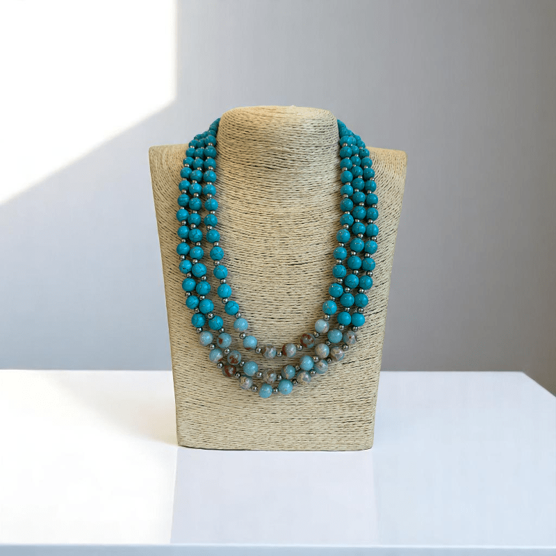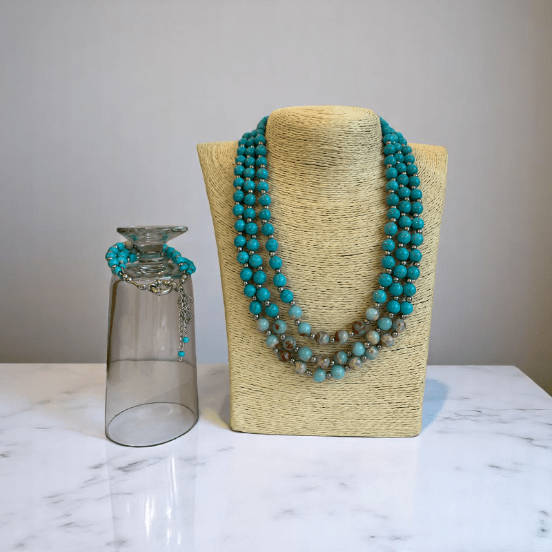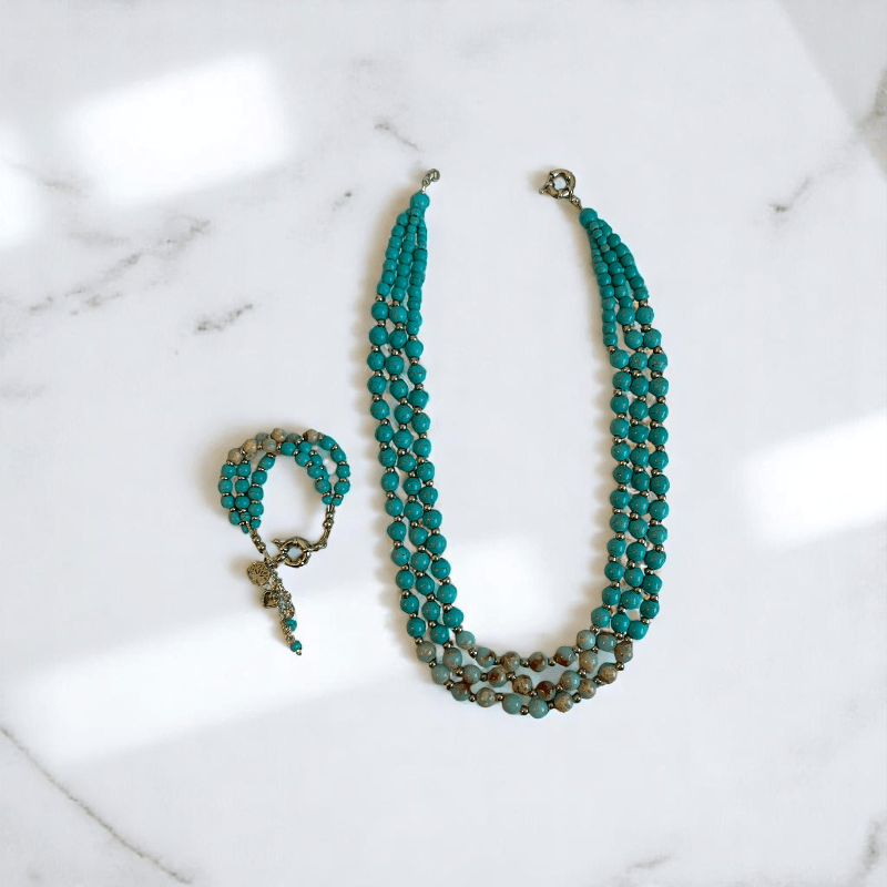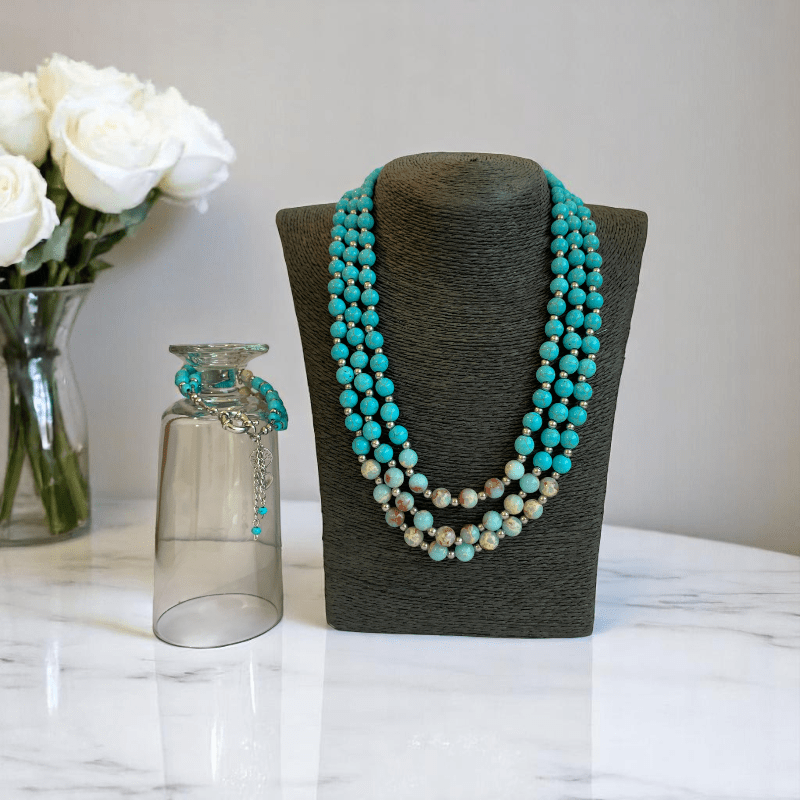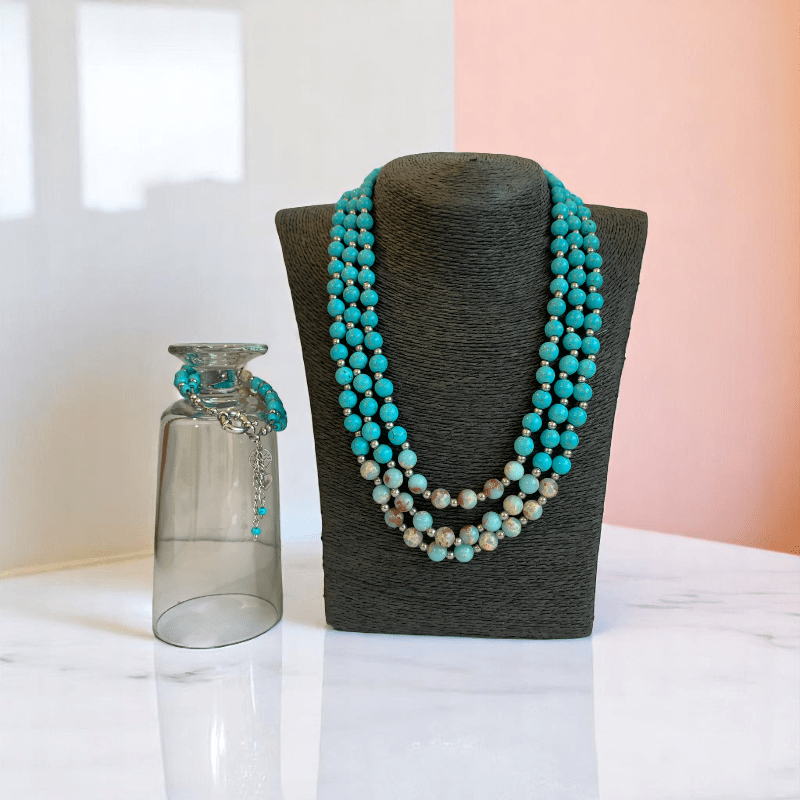 Ocean Essence 3 Layered Set | Turquoise & Aquamarine Stone - For Women | Includes: Necklace, Bracelet