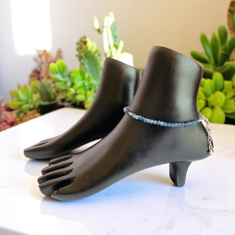 - Channel calm confidence and timeless beauty with this exquisite 925 Sterling Silver anklet for women, adorned with serene Blue Agate stone beads.