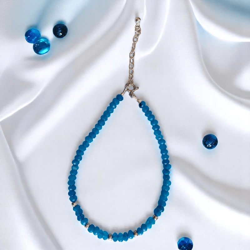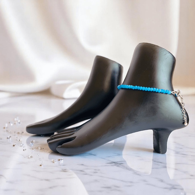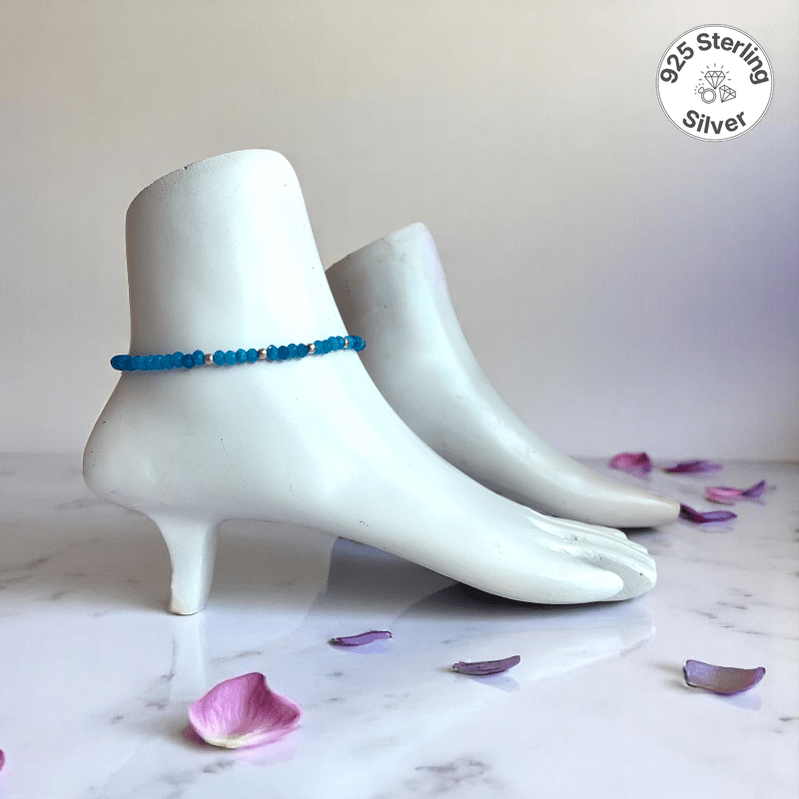 - Add a splash of color and elegance to your steps with this dazzling 925 Sterling Silver anklet for women, adorned with Blue Agate beads all over.