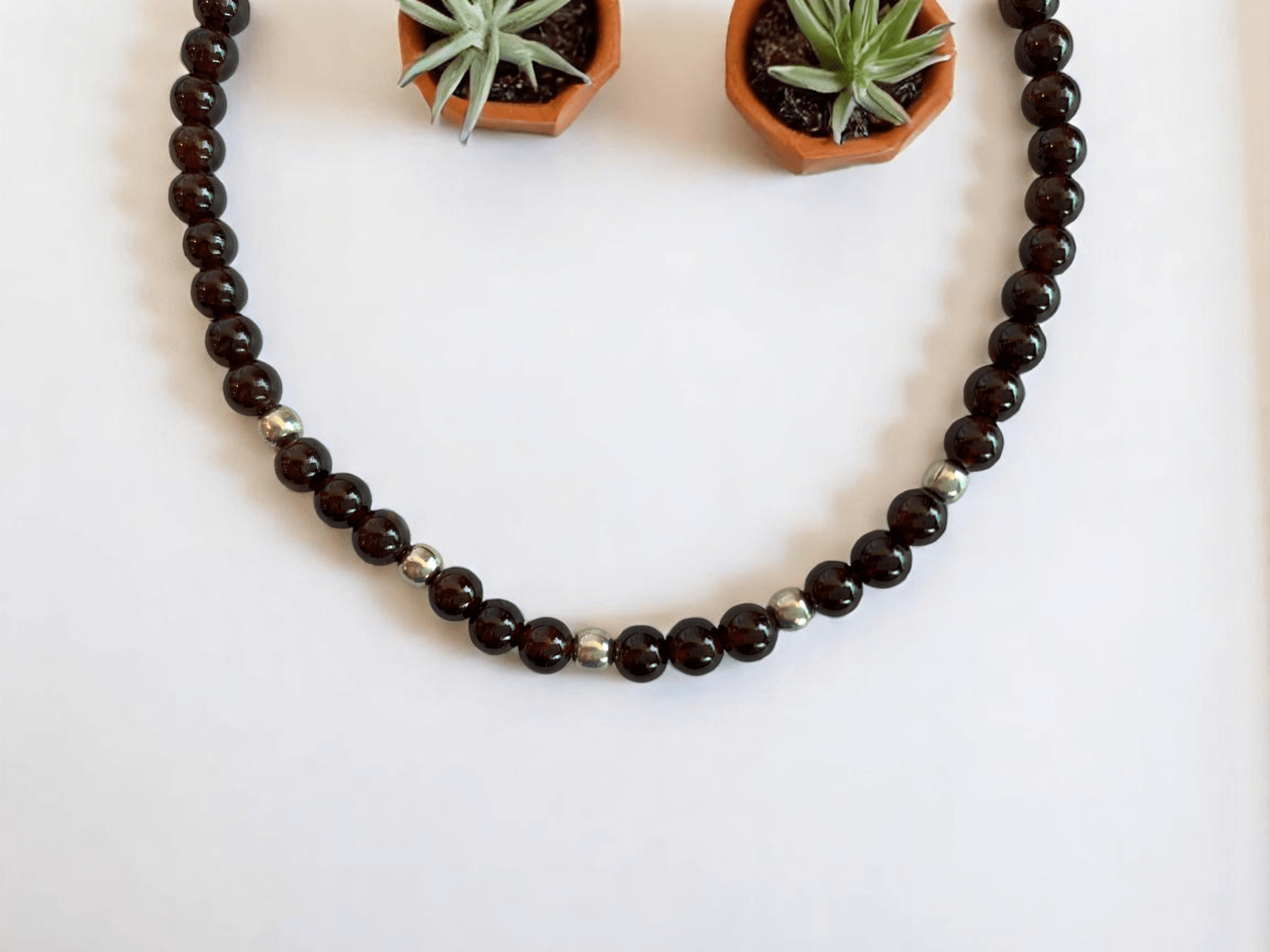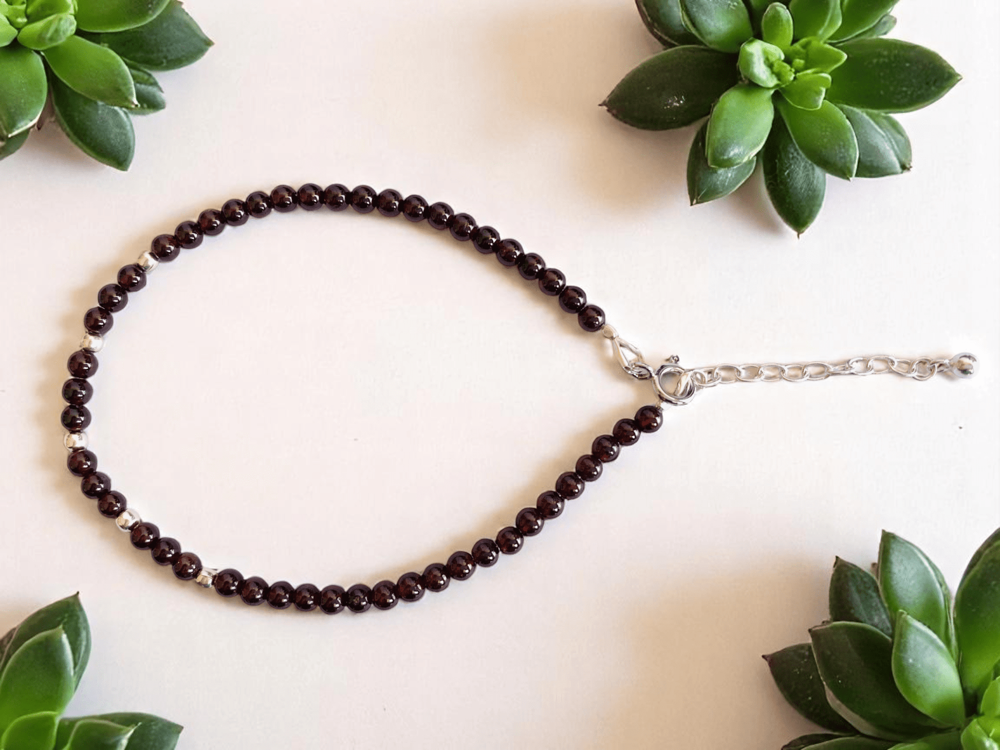 - Radiate confidence and grace with this luxurious 925 Sterling Silver anklet for women, adorned with Garnet stone beads all over.