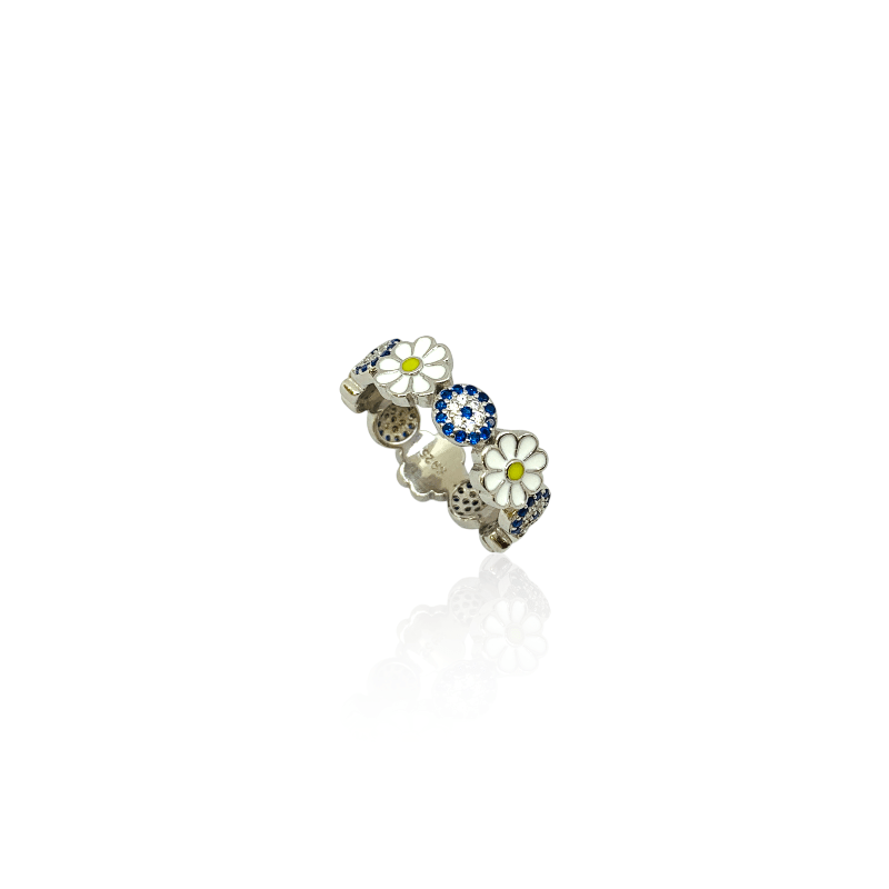 - Crafted for the woman who loves to stand out, this colorful ring features a delightful mix of flowers and hearts artfully arranged around the band.
