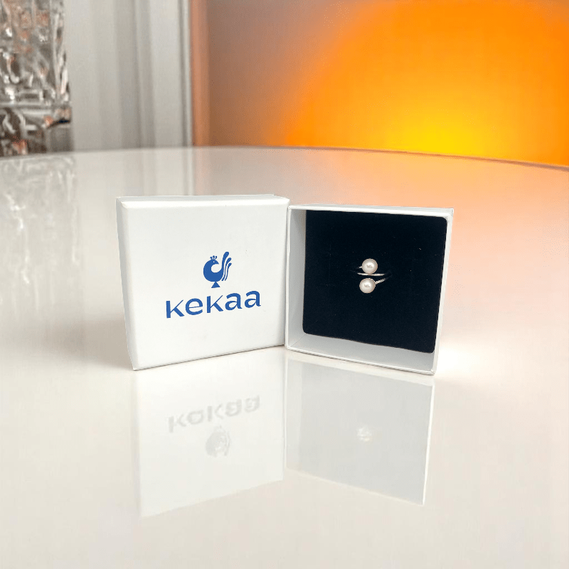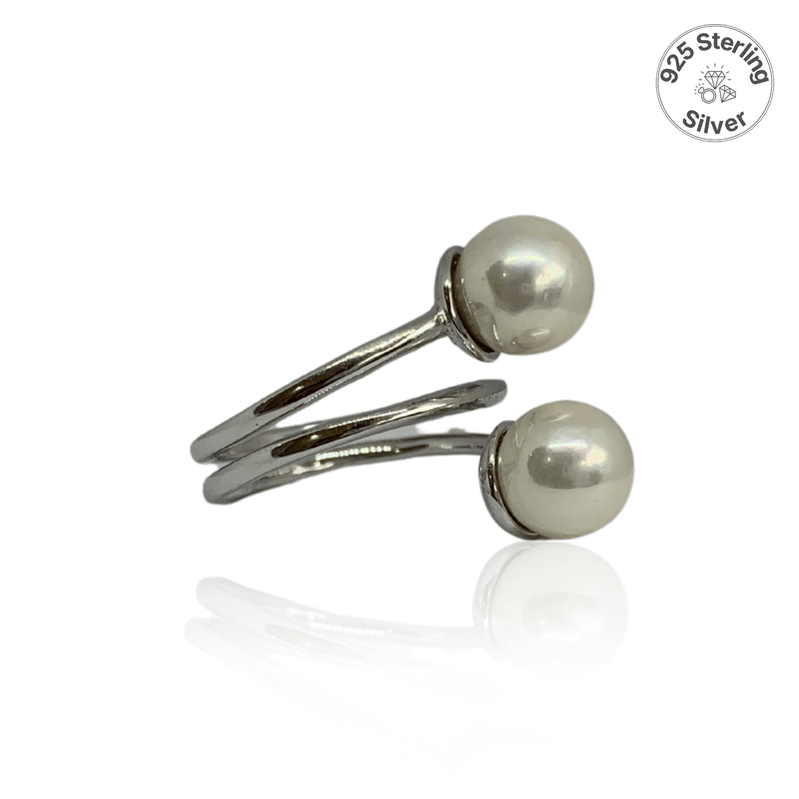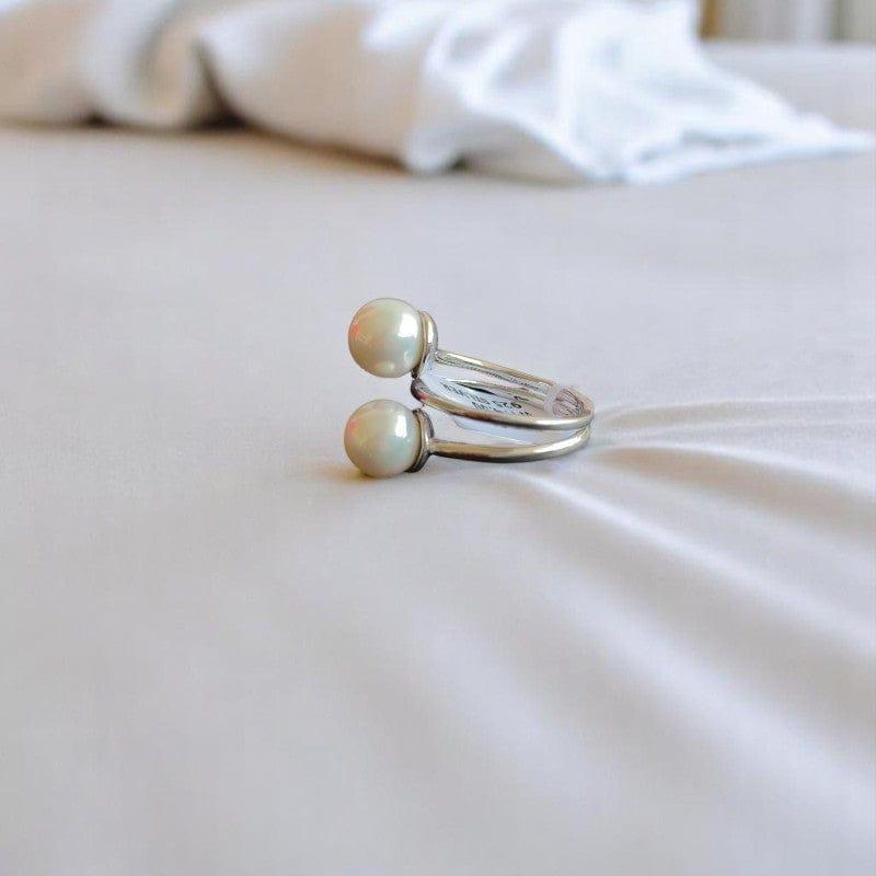 - The ring features two lustrous pearls on top, adding a touch of classic beauty and modern elegance to your look.
