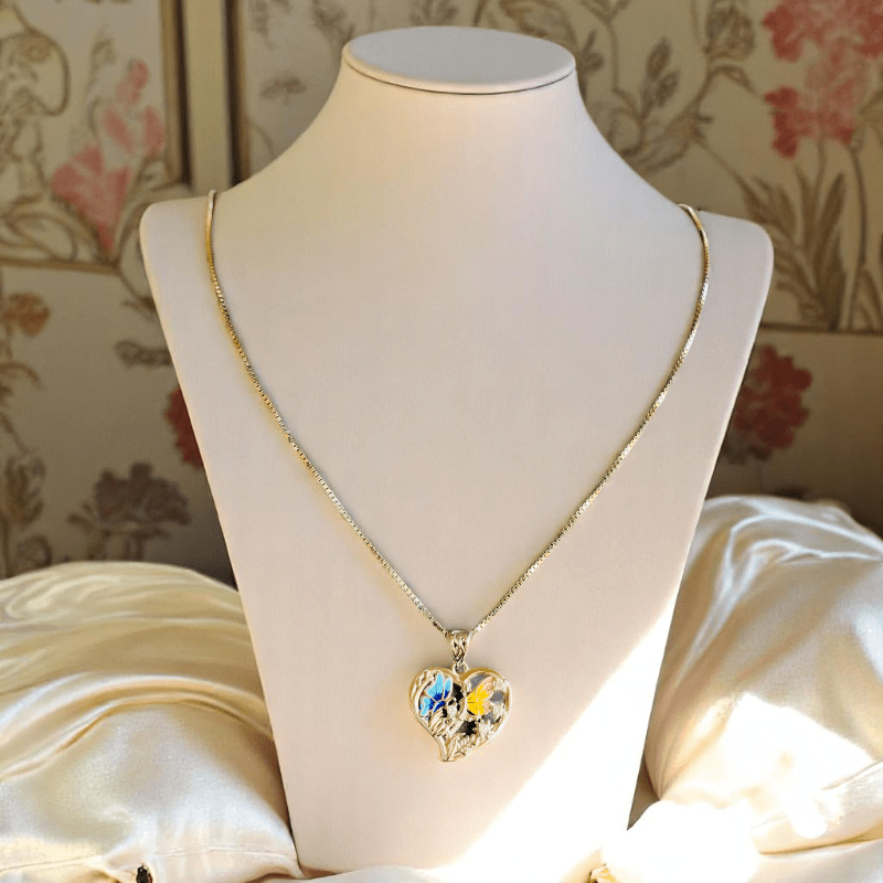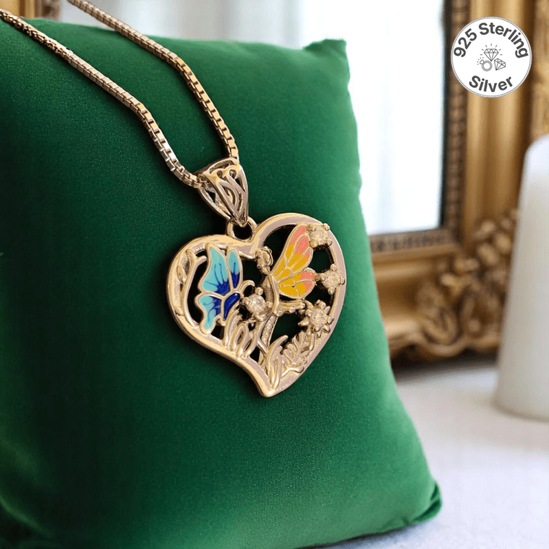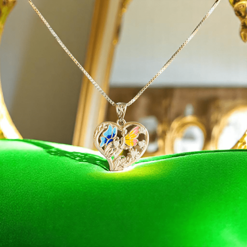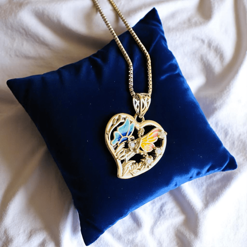 - Pendant is adorned with a butterfly and angel, symbolizing freedom, transformation, and divine protection.