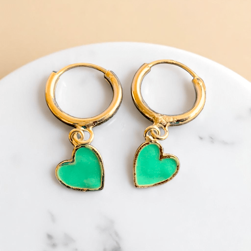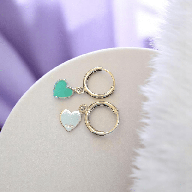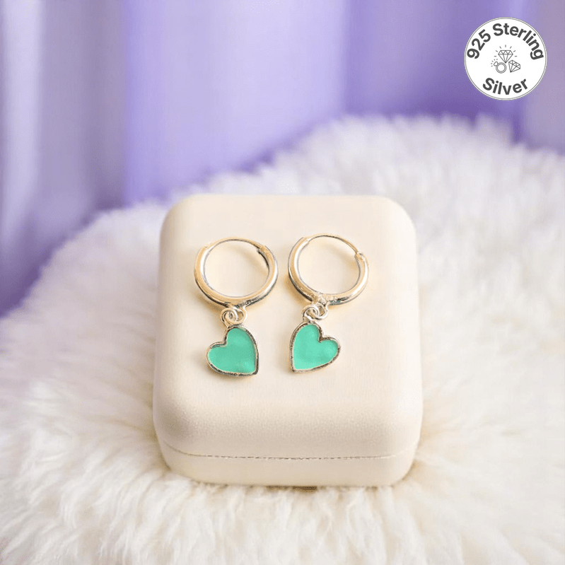 - 925 Silver Small Hoop Earrings with Green Heart Charm designed for women.