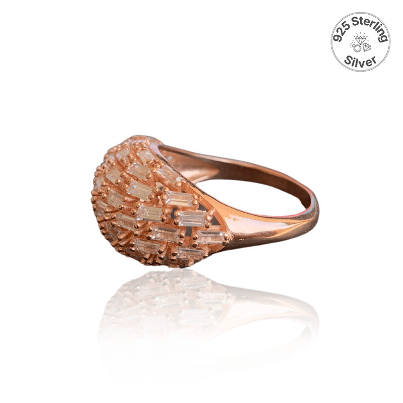 - Elevate your style with this stunning 925 Silver Ring, beautifully rose gold-plated to offer a rich, warm glow.