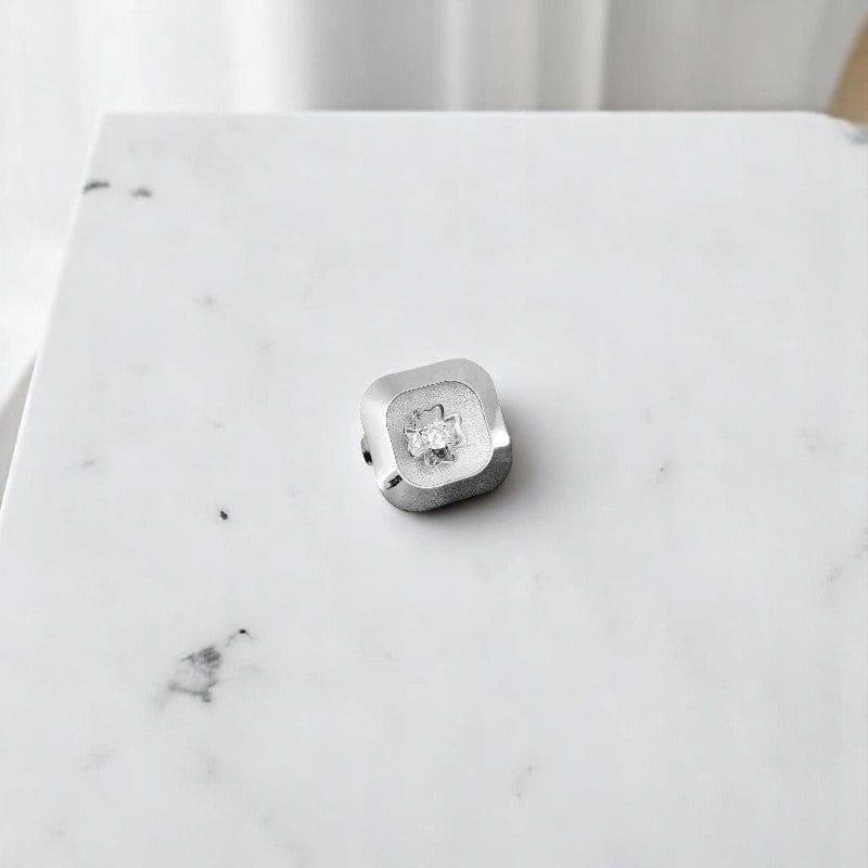 - The design features a square-shaped top that frames a delicate flower motif at its center — a symbol of natural beauty and timeless style.