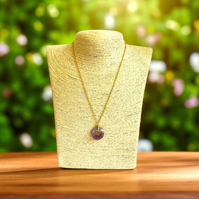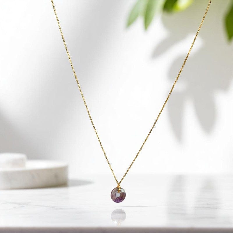 - π Donut-Shaped Amethyst Stone Pendant β Features a polished amethyst stone known for its calming energy and rich purple hue.