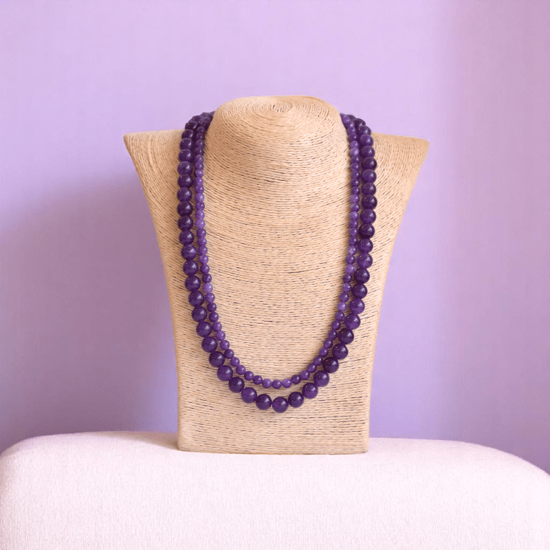 Double Layered Deep Purple Necklace | Amethyst Stone - For Women | Includes: Necklace (Set Of 2)