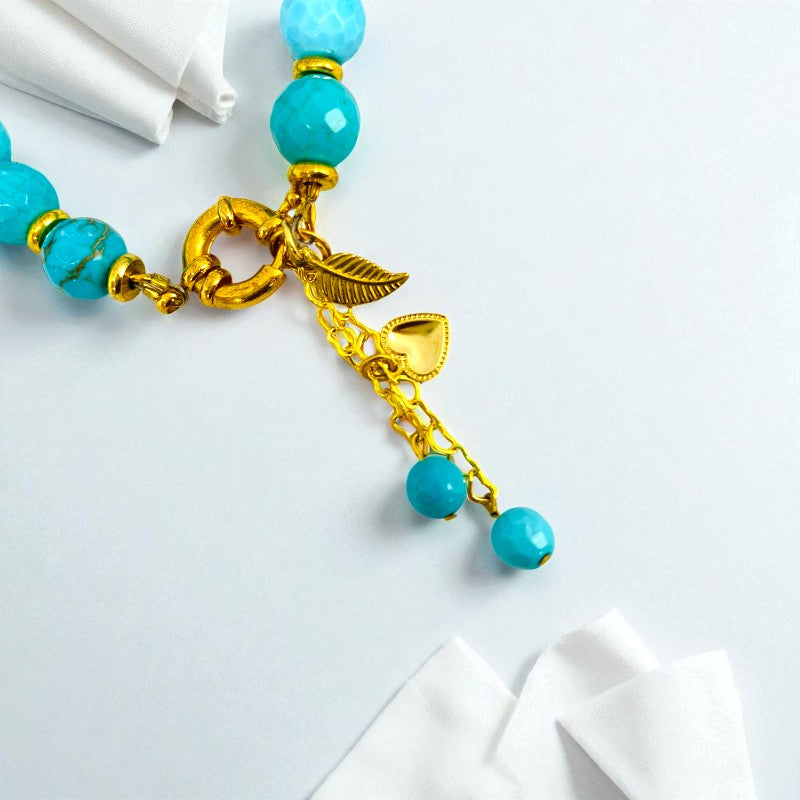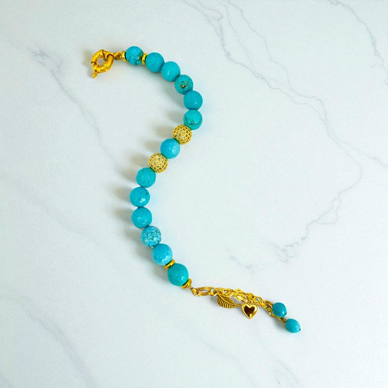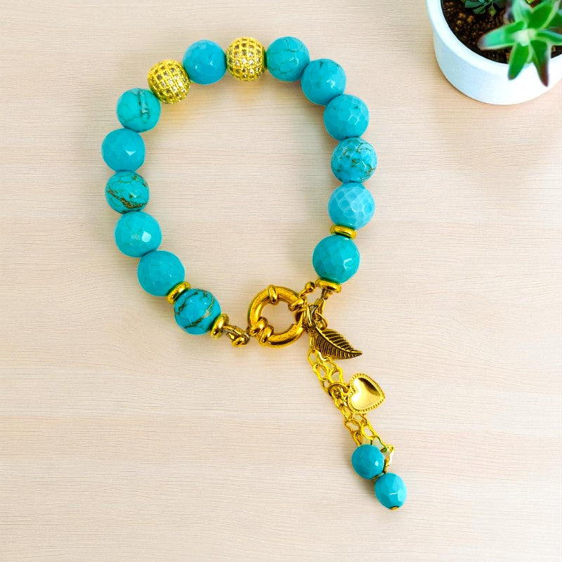 - Add a pop of color and elegance to your wardrobe with the Turquoise Magnesite Stone Bracelet, a stunning piece designed for females who love bold, yet graceful accessories.