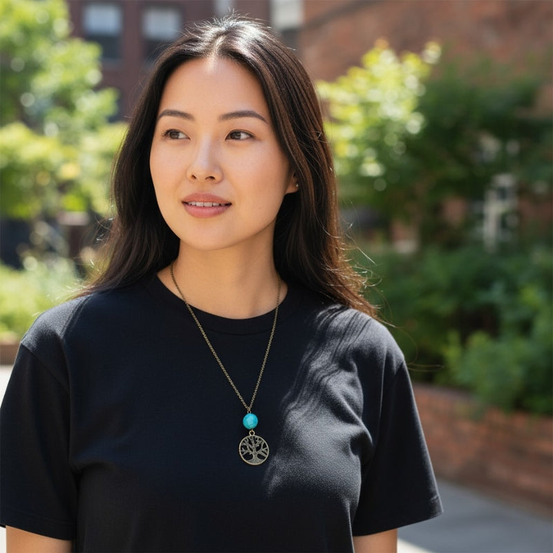 Banyan Tree Turquoise Necklace | Brass & Turquoise - For Women | Includes: Necklace