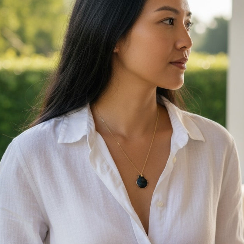 Black calico scallop Necklace | Natural Scallop - For Women | Includes: Necklace