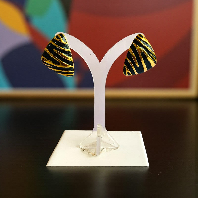 Black Chunky Triangle Earring | 18K PVD Gold Plated - For Women | Includes: Earring