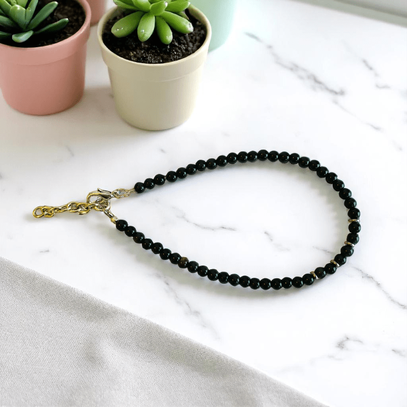 - The deep, glossy black Obsidian stones exude a sense of mystery and sophistication, making this anklet a perfect blend of fashion and meaning.