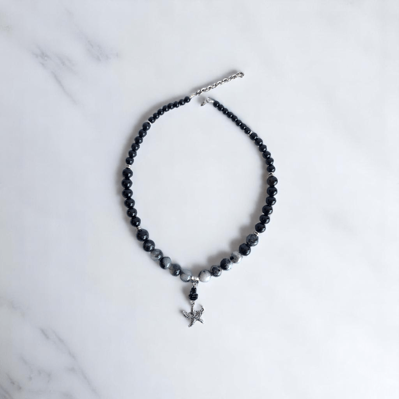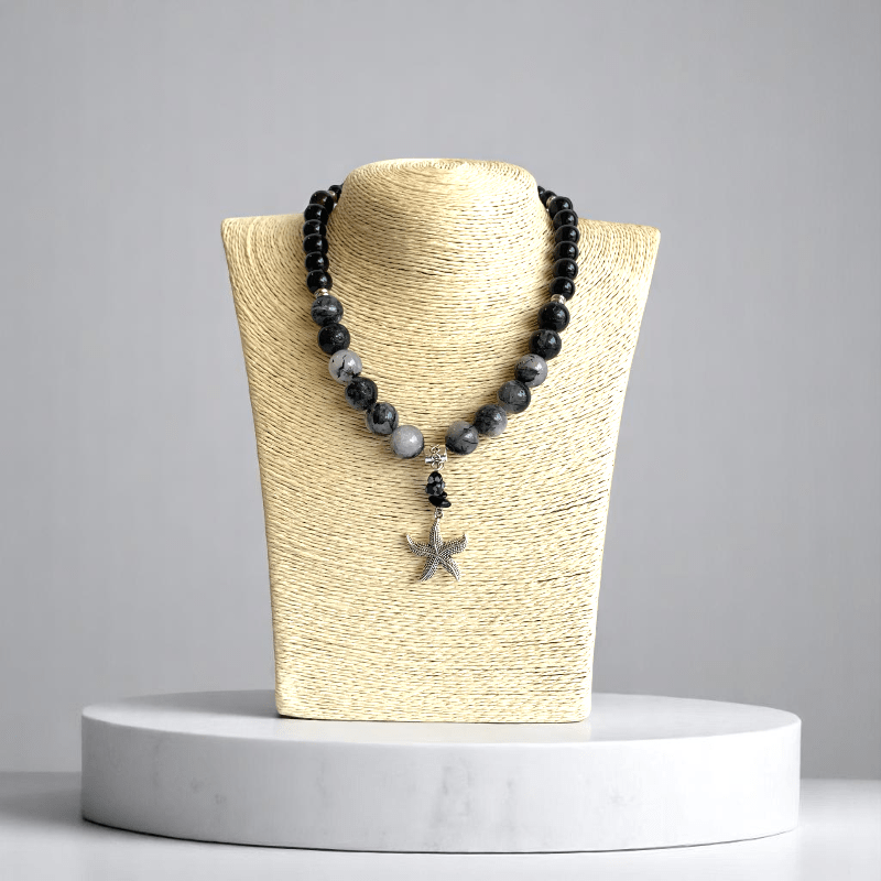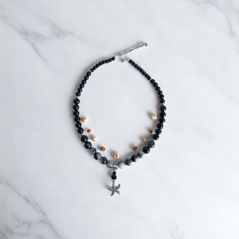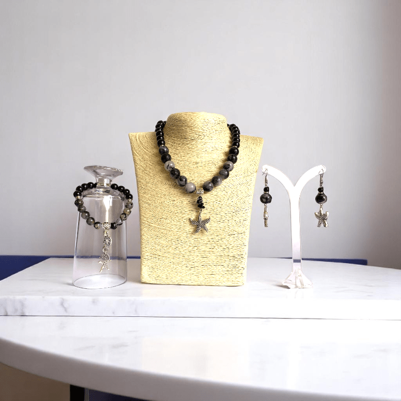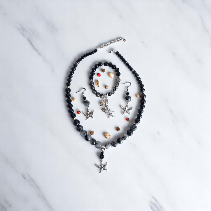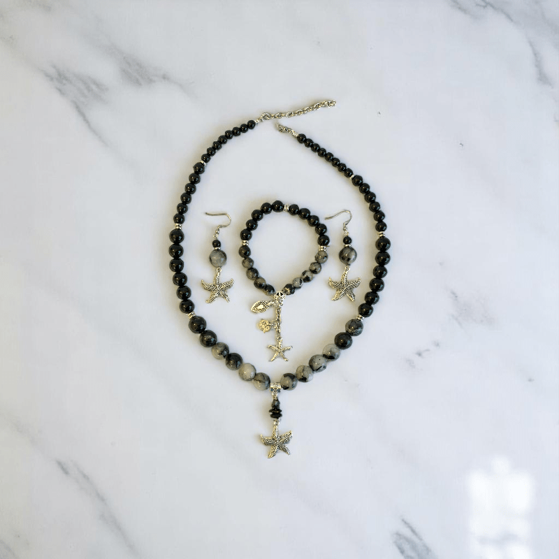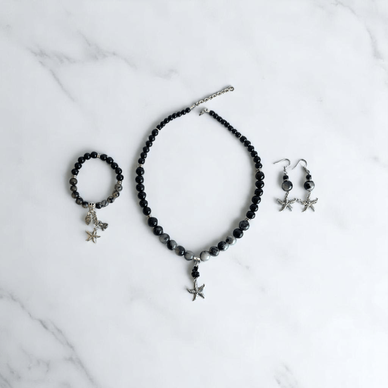 Ocean Mystique Set | Black Obsidian & Black Rutile Stone - For Women | Includes: Necklace, Bracelet, Earrings
