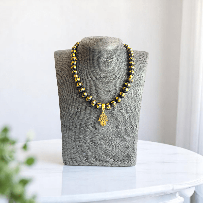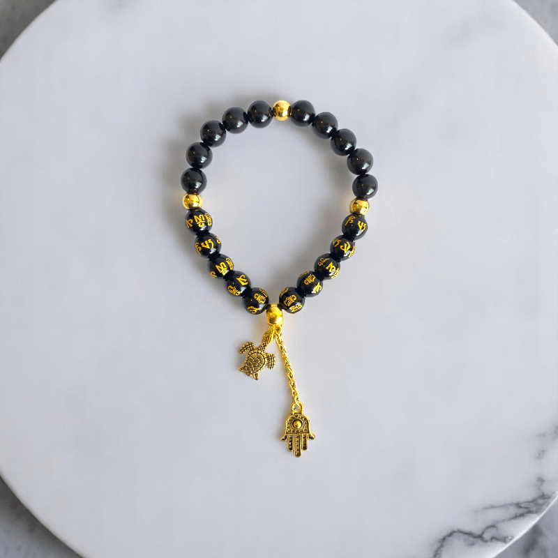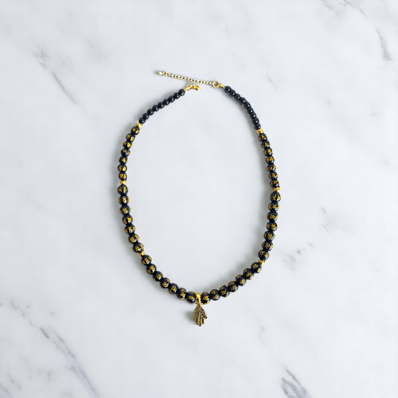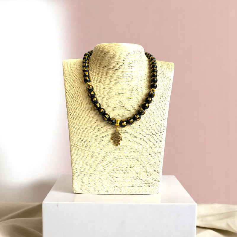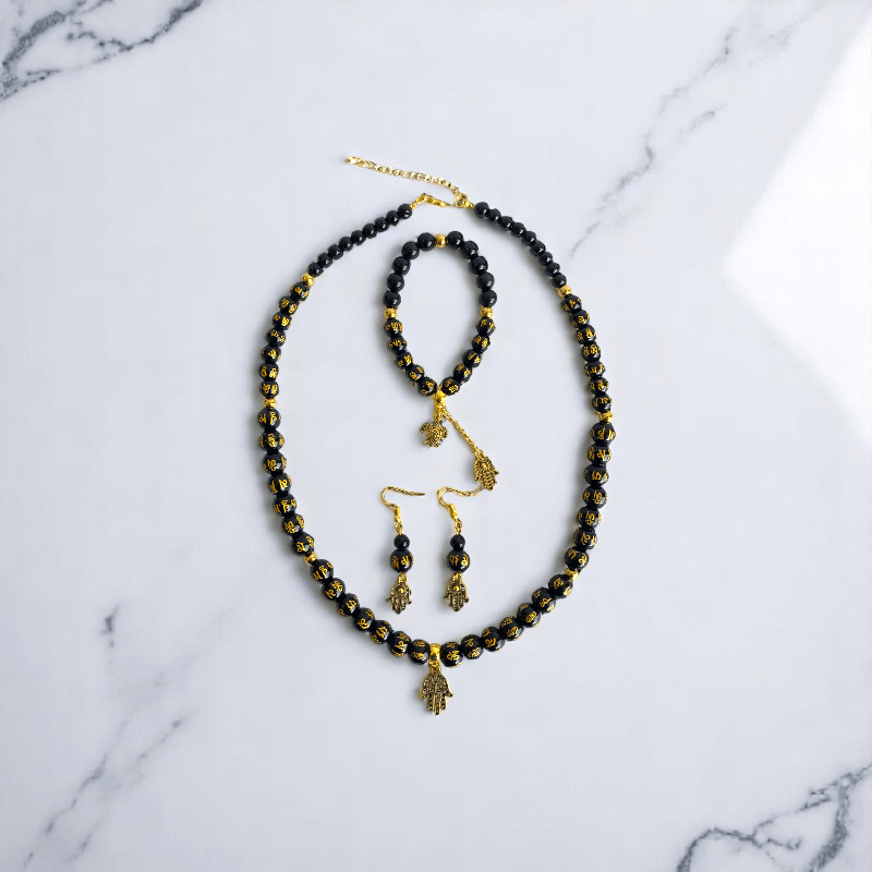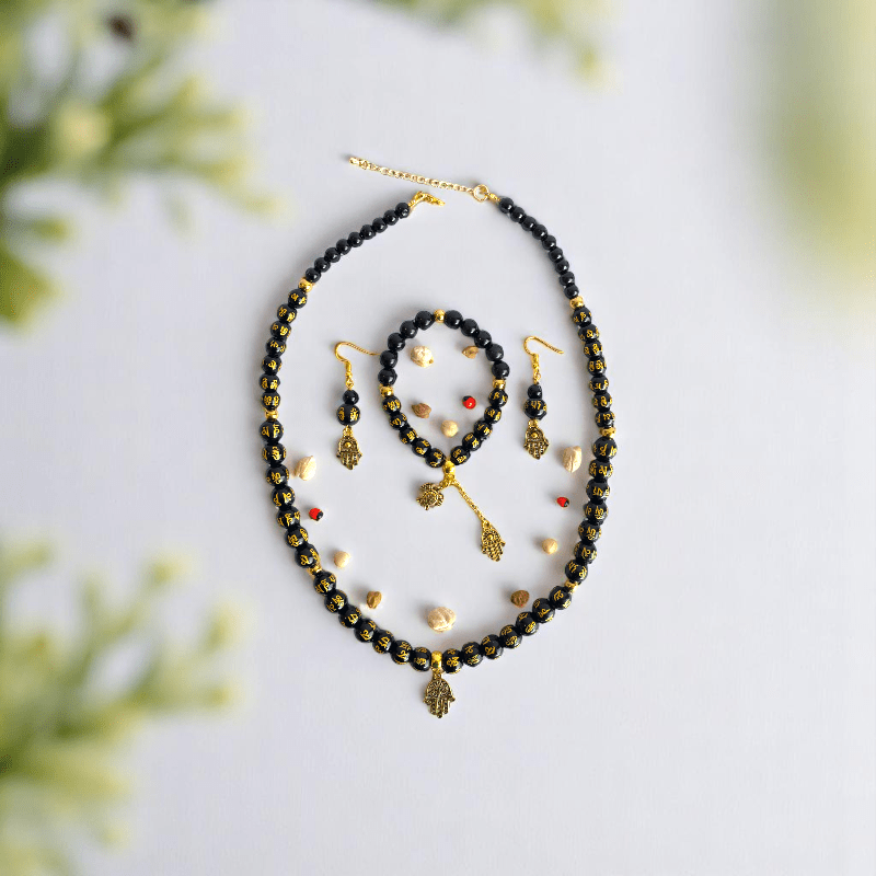 - Black Om Mani Stone Jewellery Set blends spiritual elegance with contemporary style.