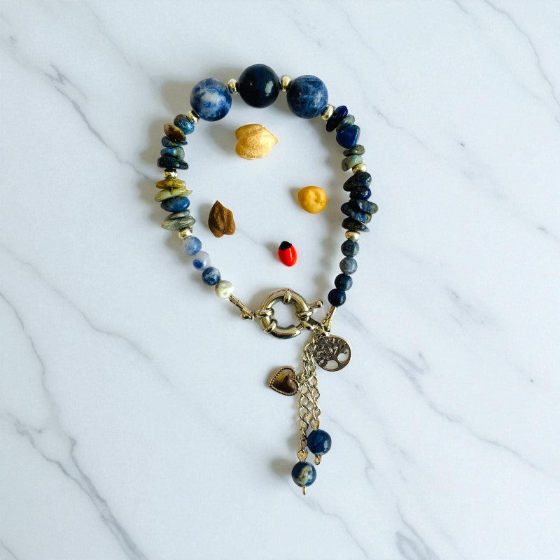 - 💙 Chic Sodalite Bracelet – Designed with a mix of stone beads and raw chips of genuine Sodalite, creating a modern, textural contrast.