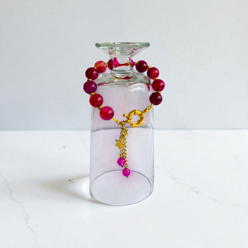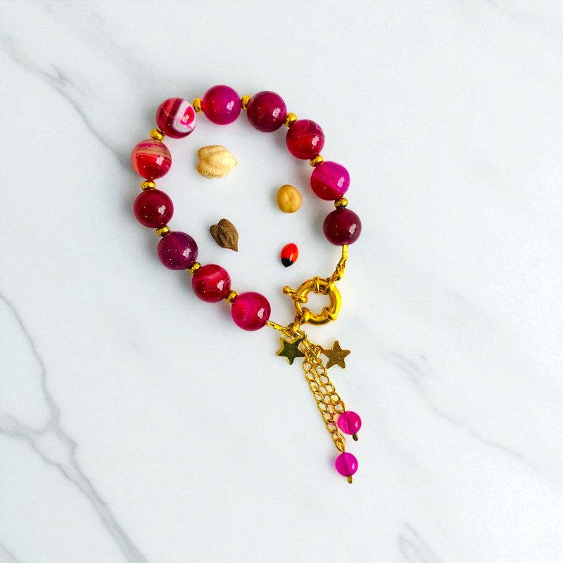 Blushy beads Bracelet | Pink Banded Agate Stone & 18k Gold Plated - For Women | Includes: Bracelet