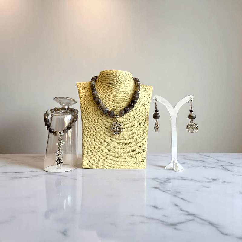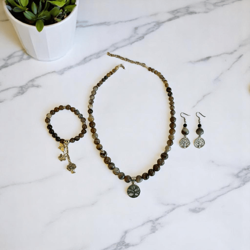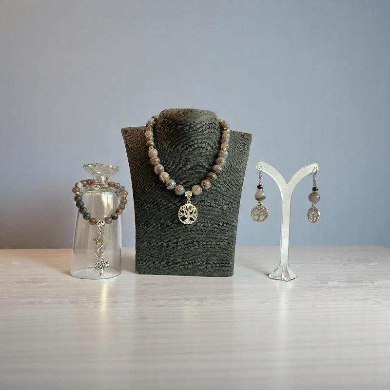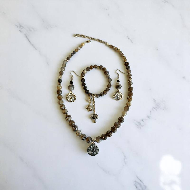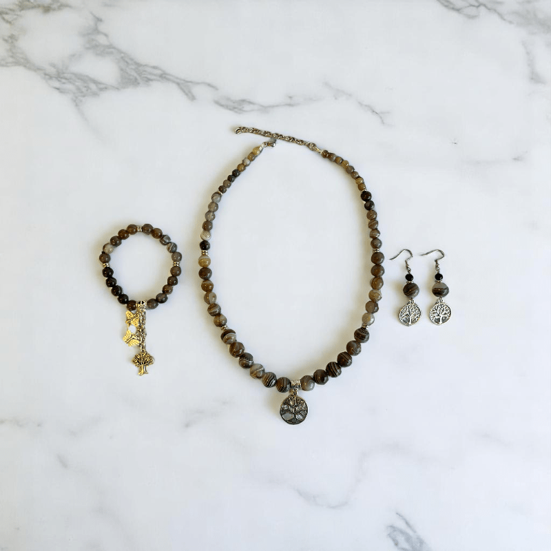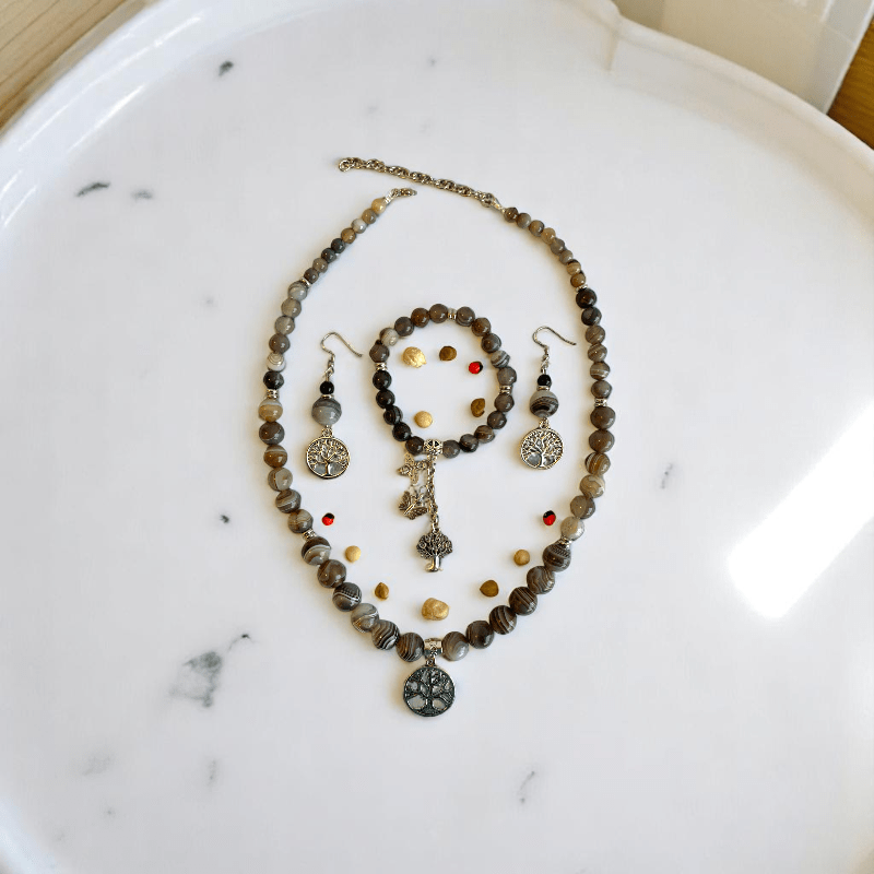 Inner Peace Set | Botswana Stone - For Women | Includes: Necklace, Bracelet, Earring