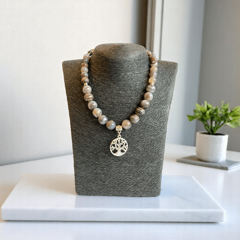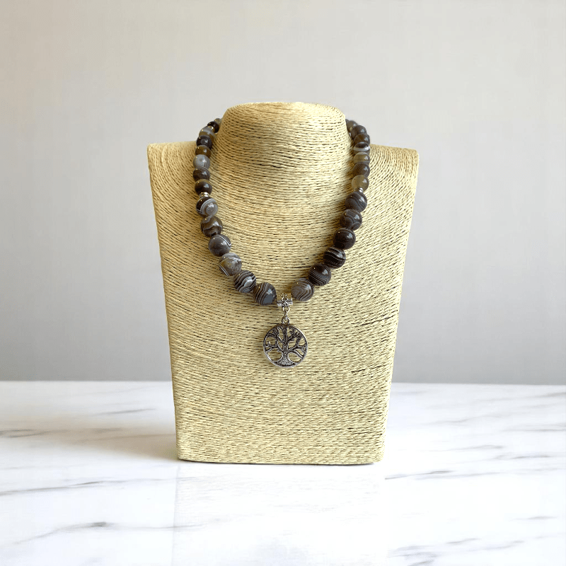 - Botswana Agate Stone Necklace Set adds elegance and grounding energy to any outfit.