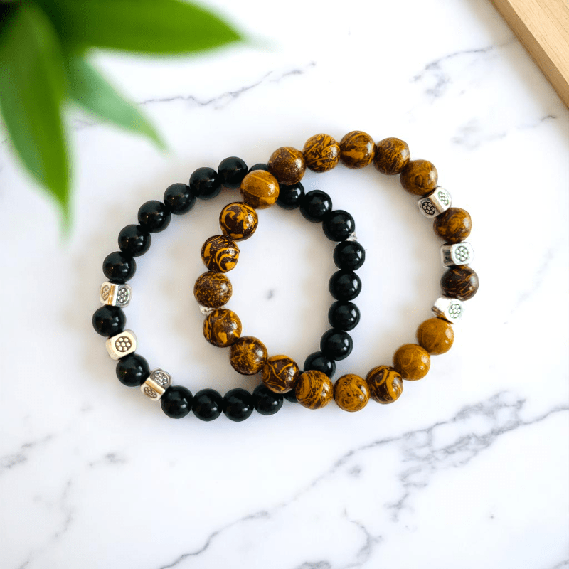 Twofold Grace Bracelets | Black Obsidian & Mariam Jasper - For Kids | Includes: Bracelets (Set of 2)