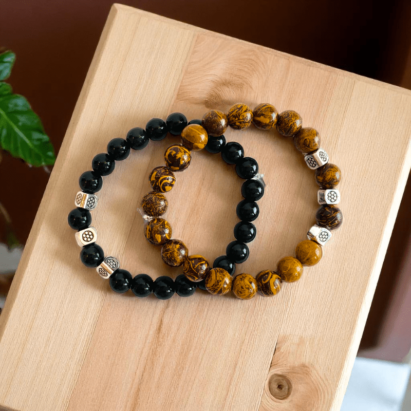 - Introduce a blend of strength, protection, and healing with this Set of Two Bracelets for boys and girls, featuring Black Obsidian and Mariam Jasper stones.
