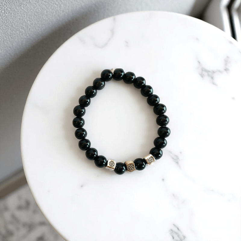 - The first bracelet is made from Black Obsidian, a stone known for its strong protective qualities.
