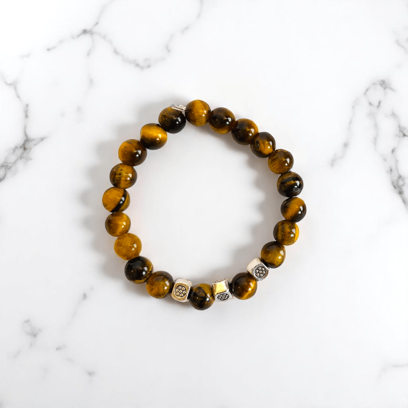 - The second bracelet features Tiger Eye, a stone of courage, strength, and protection.