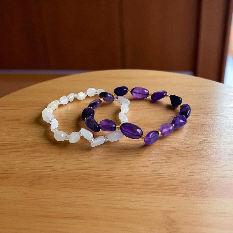 - 💎 Set of Two Elegant Bracelets: Includes one bracelet made with rich Amethyst stones and one with radiant Moonstone—a perfect balance of bold and soft tones.