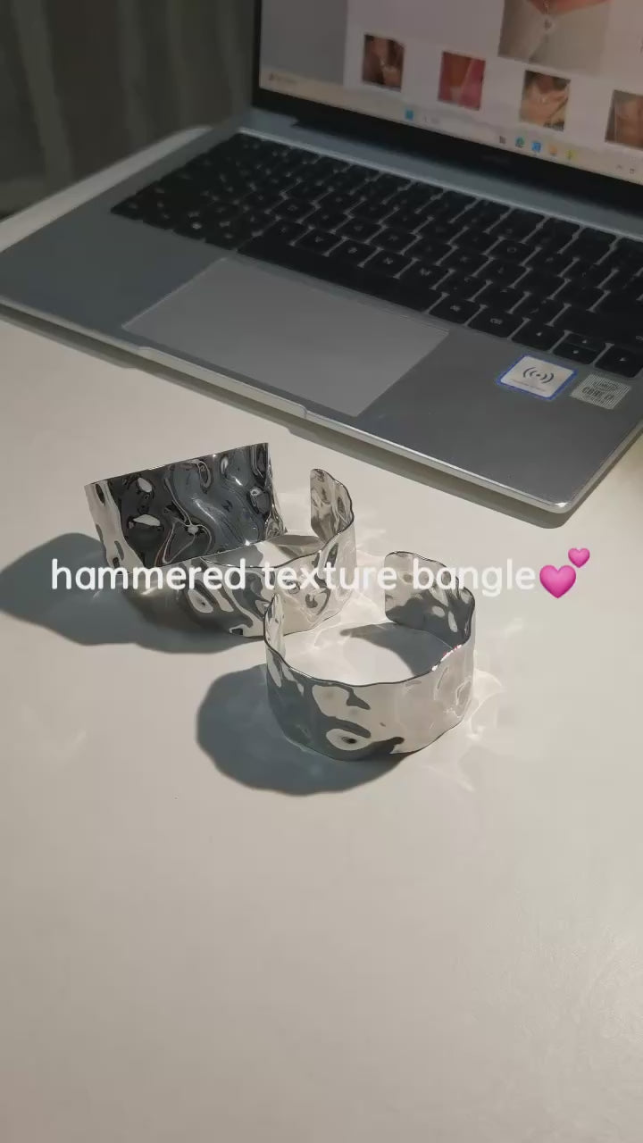 Hammered Cuff Bracelet | Silver PVD Plated - For Women | Includes: Bracelet