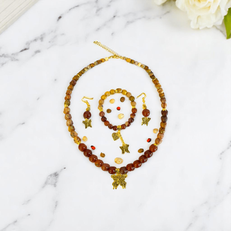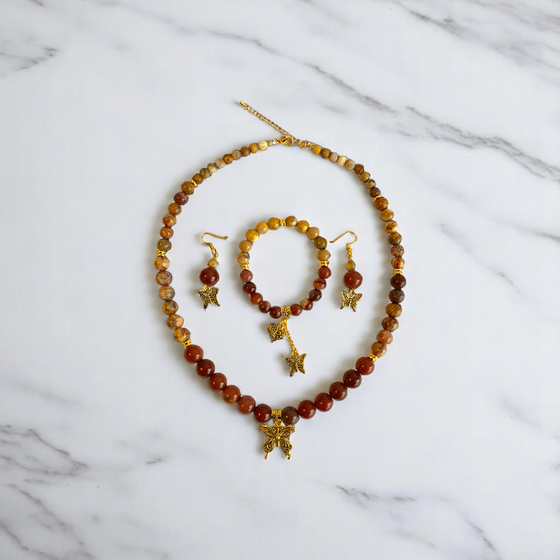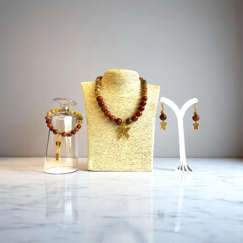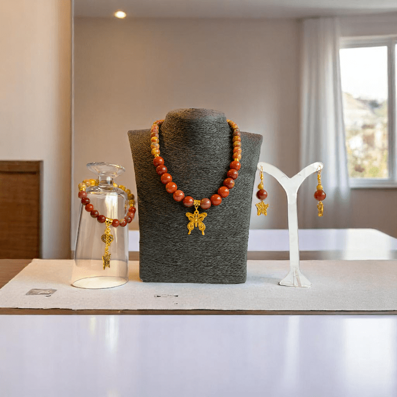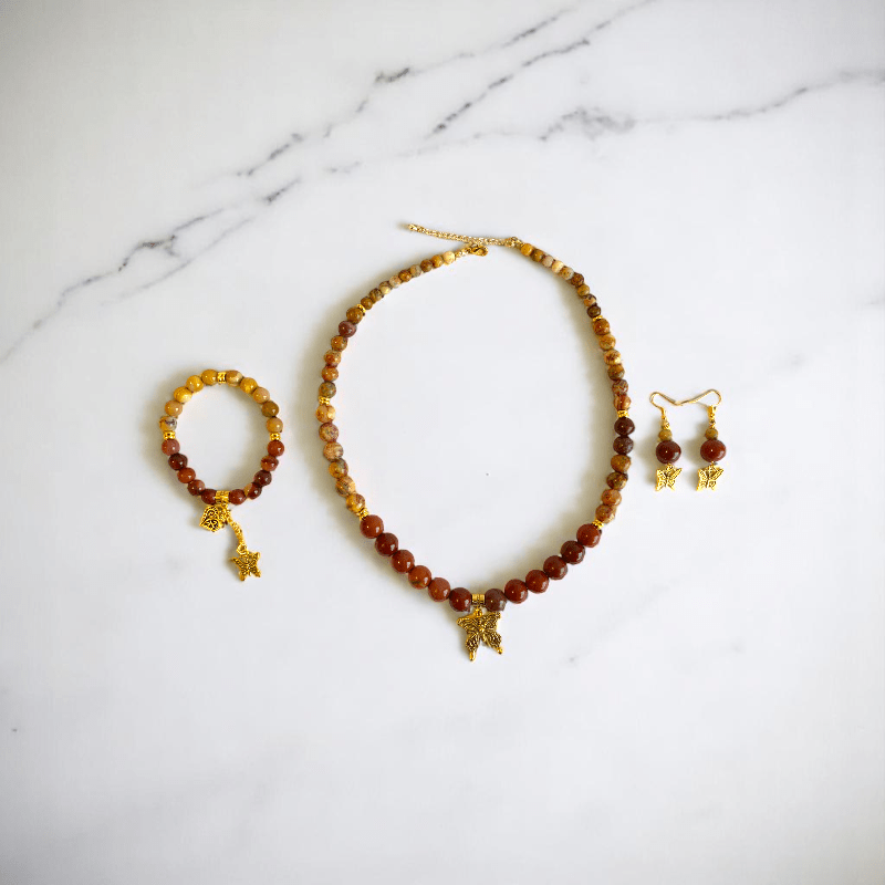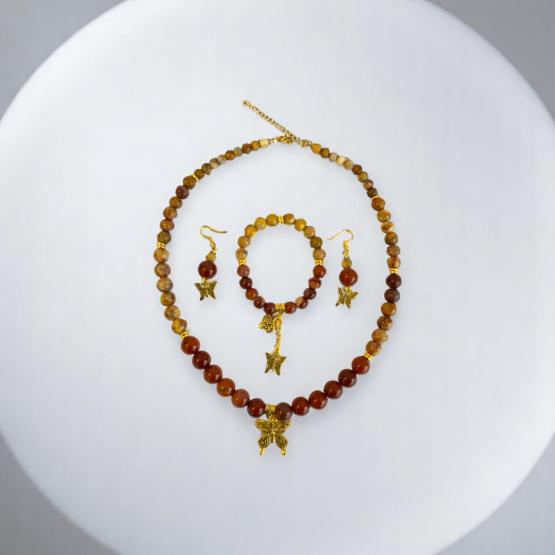 Painted Pebbles Set | Mookaite - For Women | Includes: Necklace, Bracelet, Earring