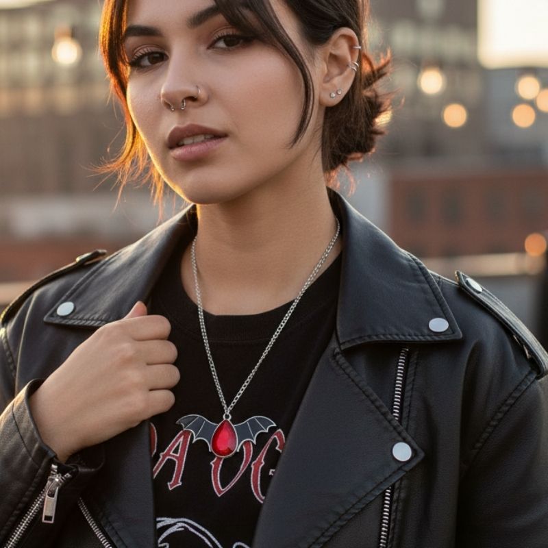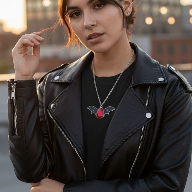 - 🦇 Striking Black Bat Pendant – Designed with sharp, edgy lines and a bold gothic aesthetic.