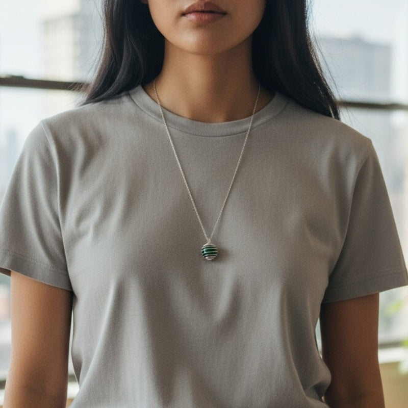 Dainty Whirl Growth Silverish Necklace | Malachite Stone- For Women | Includes: Necklace