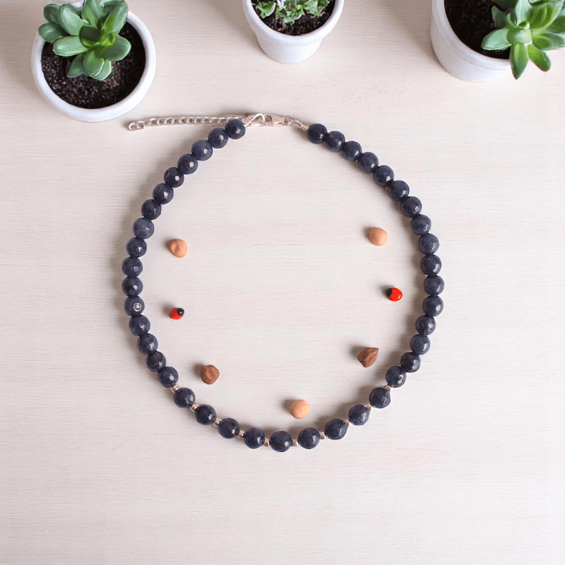 - Adorable necklace made from natural Denim Blue Sapphire stones, designed for girls.