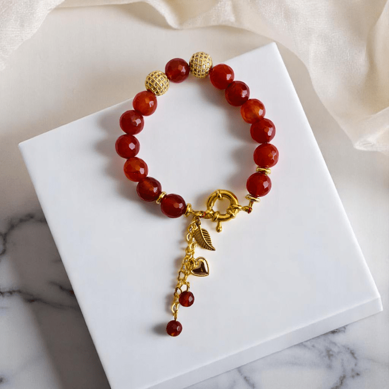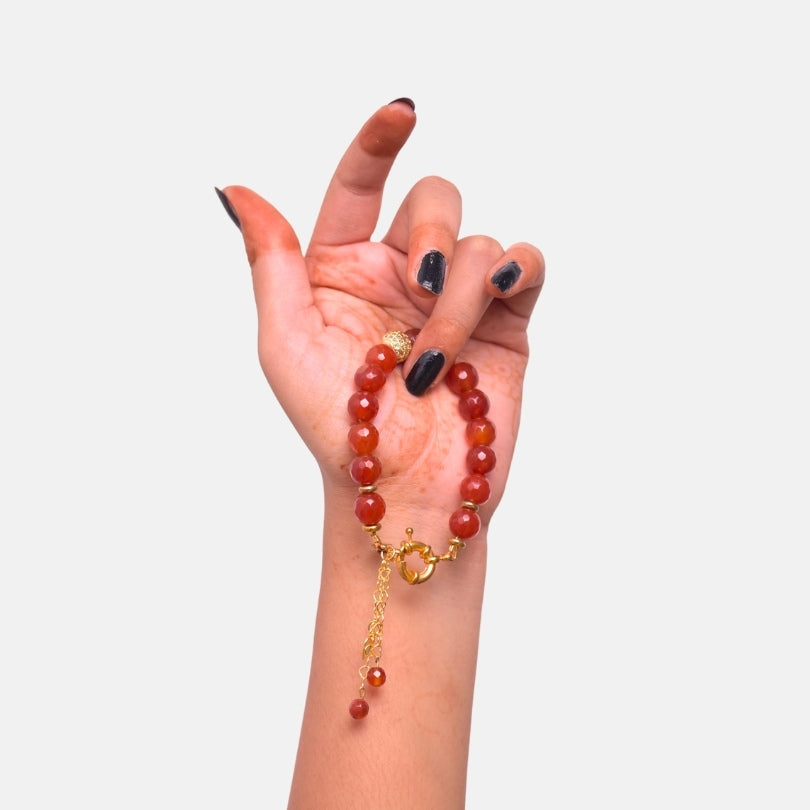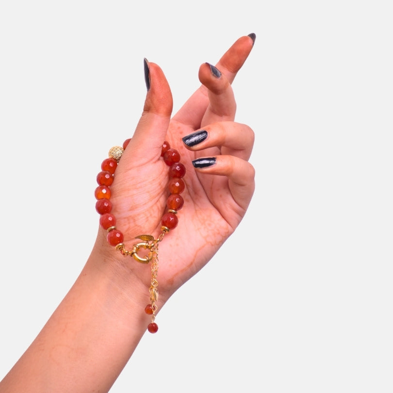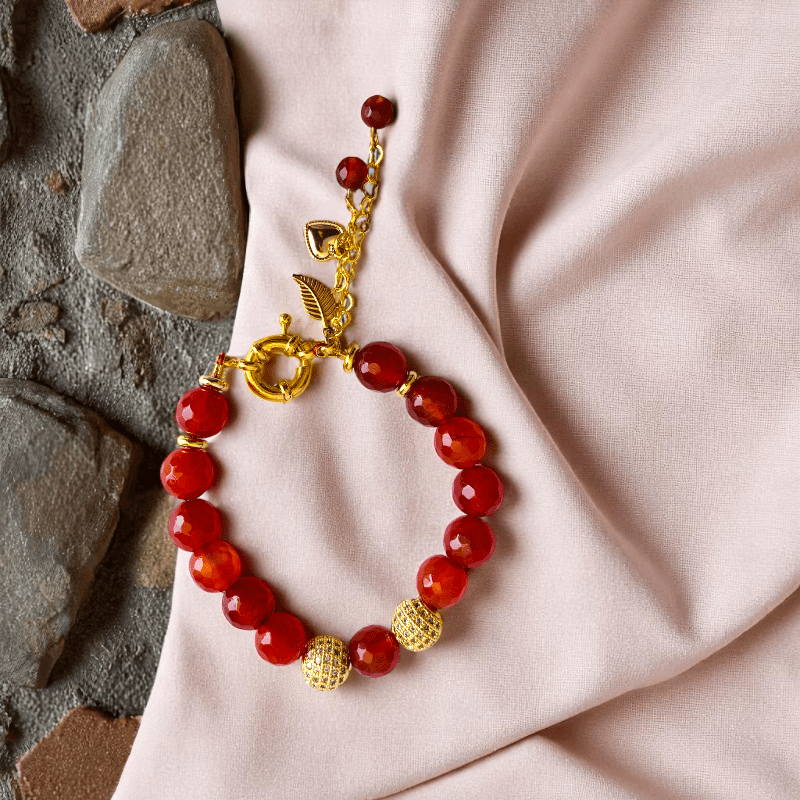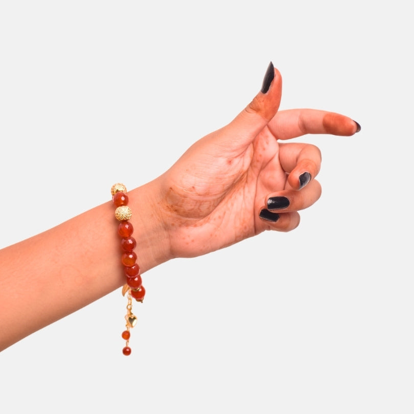 - Ignite your inner glow with the bold and empowering Red Carnelian Stone Bracelet for women.