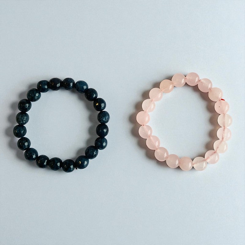 - ππΈ Set of Two Graceful Bracelets β Includes one bracelet made from serene Blue Jade and the other from delicate Rose Quartz, offering a beautiful contrast of calm and romance.
