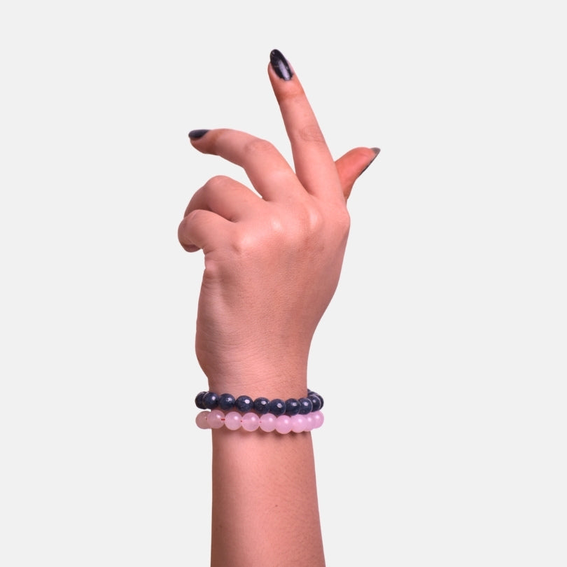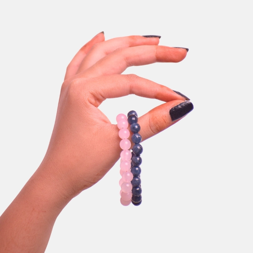 Double Grace Duo | Blue Jade & Rose Quartz Stones β For Women | Includes: Bracelet (Set of 2)