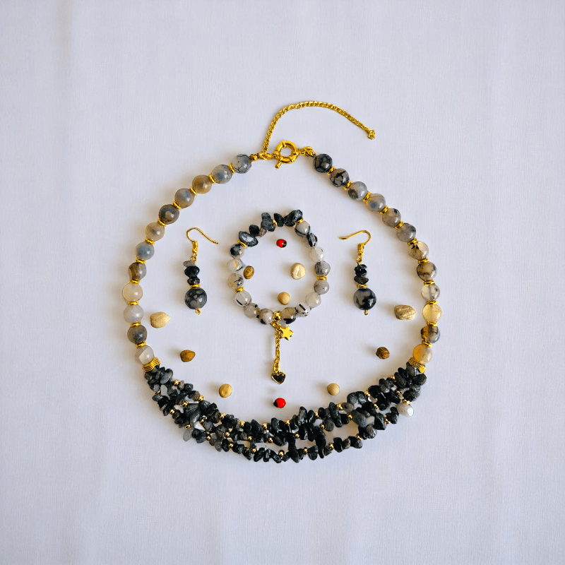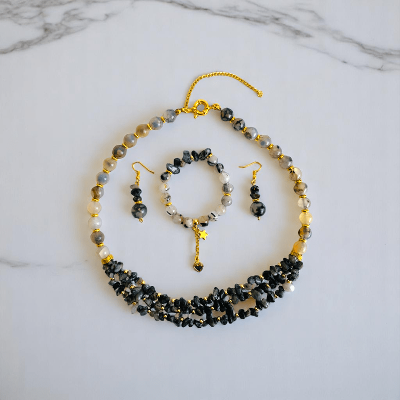Dragon's Grace Set | Dragon Agate Stone - For Women | Includes: Necklace, Bracelet, Earring