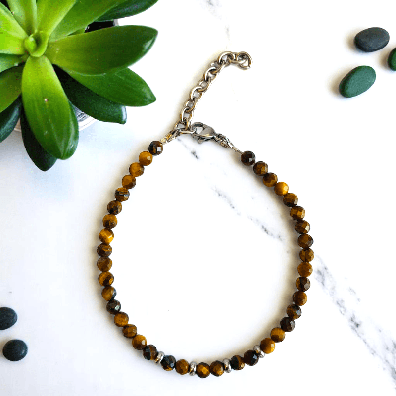 - Let your child shine with the faceted Tiger Eye Stone Anklet with Stainless Steel spacer beads, a perfect blend of style and positive energy.