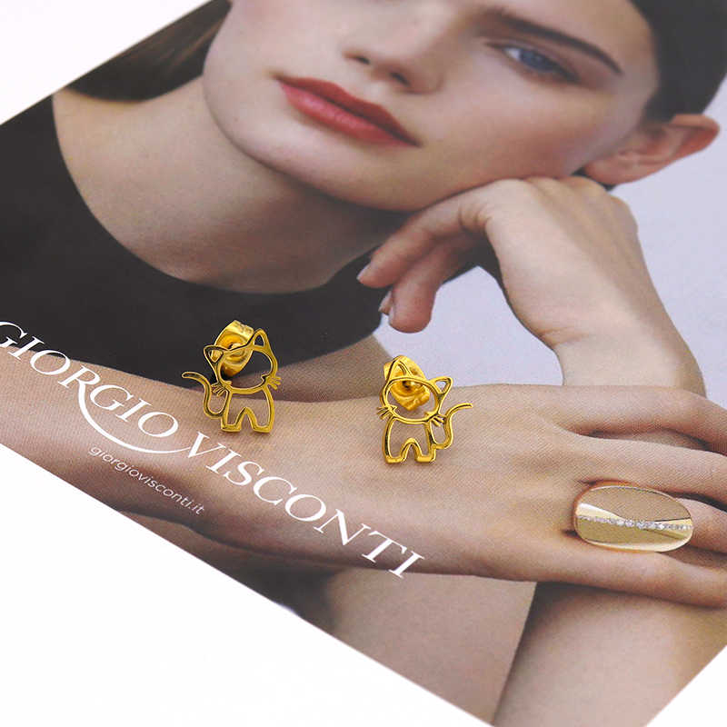 Chic Cat Earrings | 18K PVD Gold Plated - For Women | Includes: Earrings
