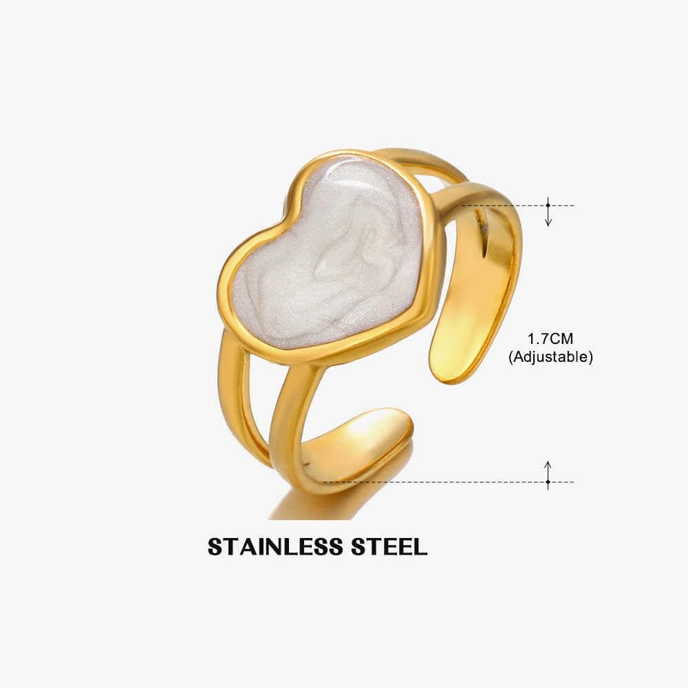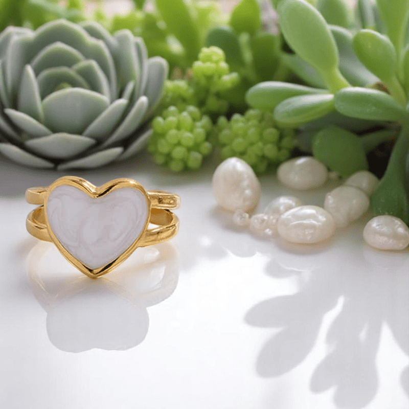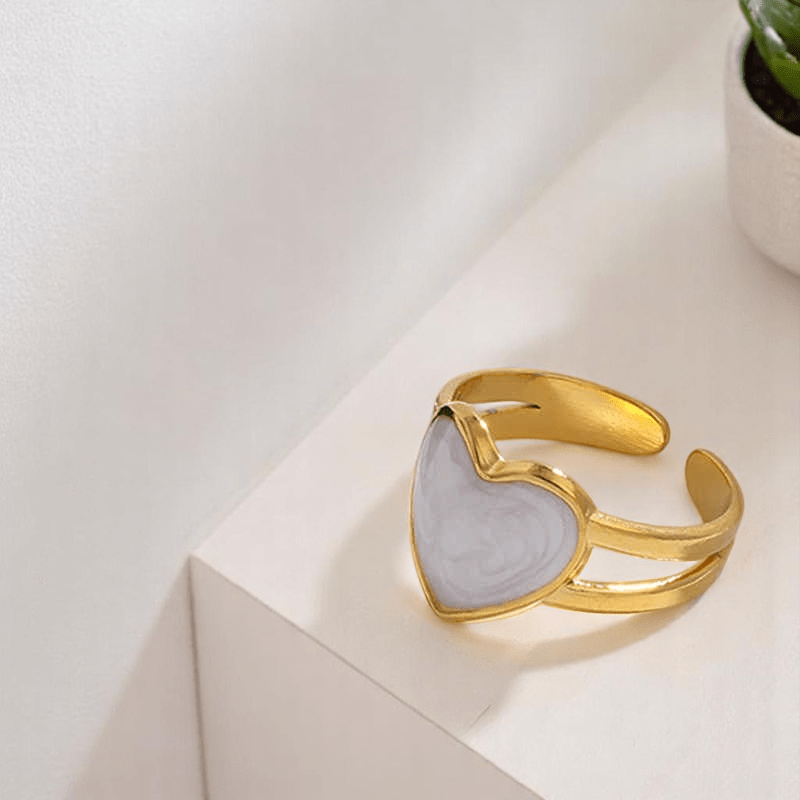 Pearly Heart Ring | PVD 18K Gold Plated, Stainless Steel, Water Proof - For Women | Includes: Ring