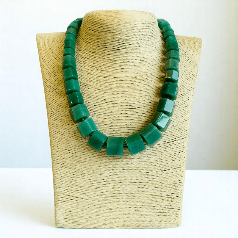 - Our Hexagon-Shaped Green Aventurine Stone Necklace showcases a symbol of luck, growth, and emotional balance.