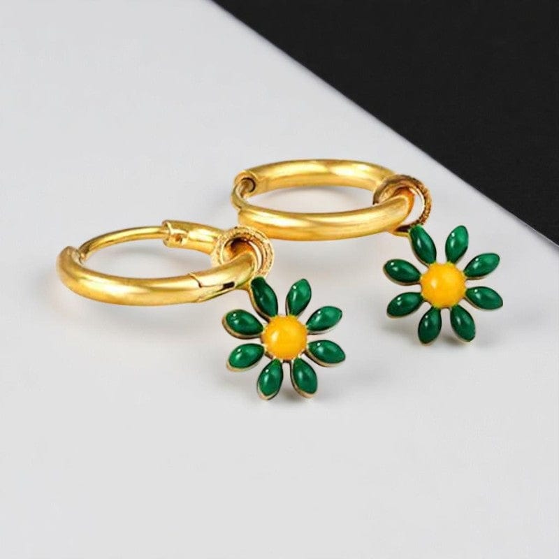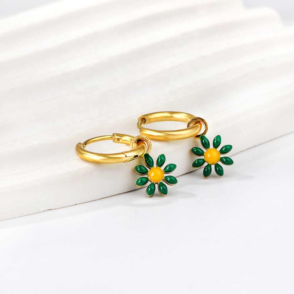 - ๐ธ Charming Green Flower Charm: Features a beautiful hanging green flower charm that adds a fresh, nature-inspired touch to classic hoops.