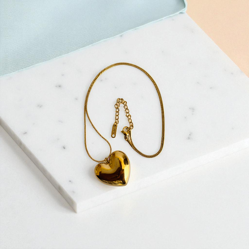 - Fall in love with the Golden Colour PVD Plated Chain featuring a heart-shaped pendant.