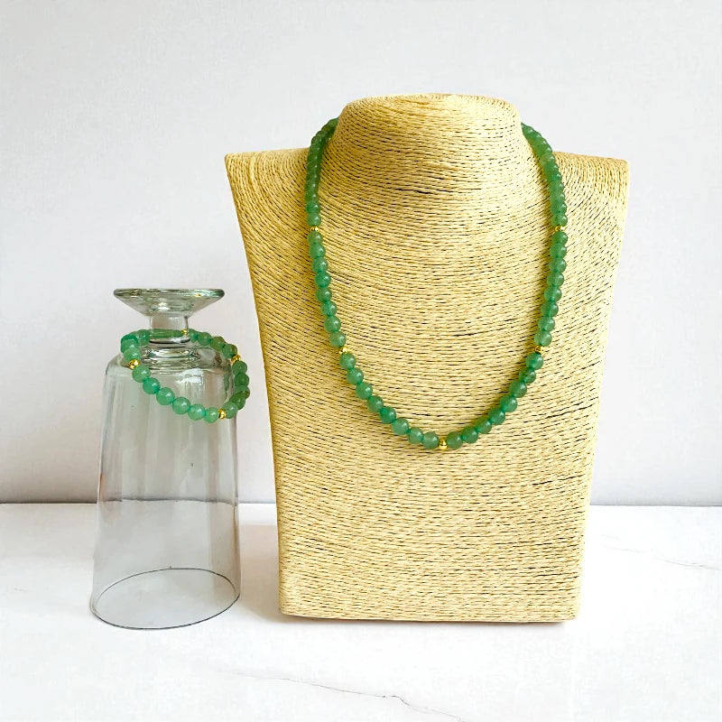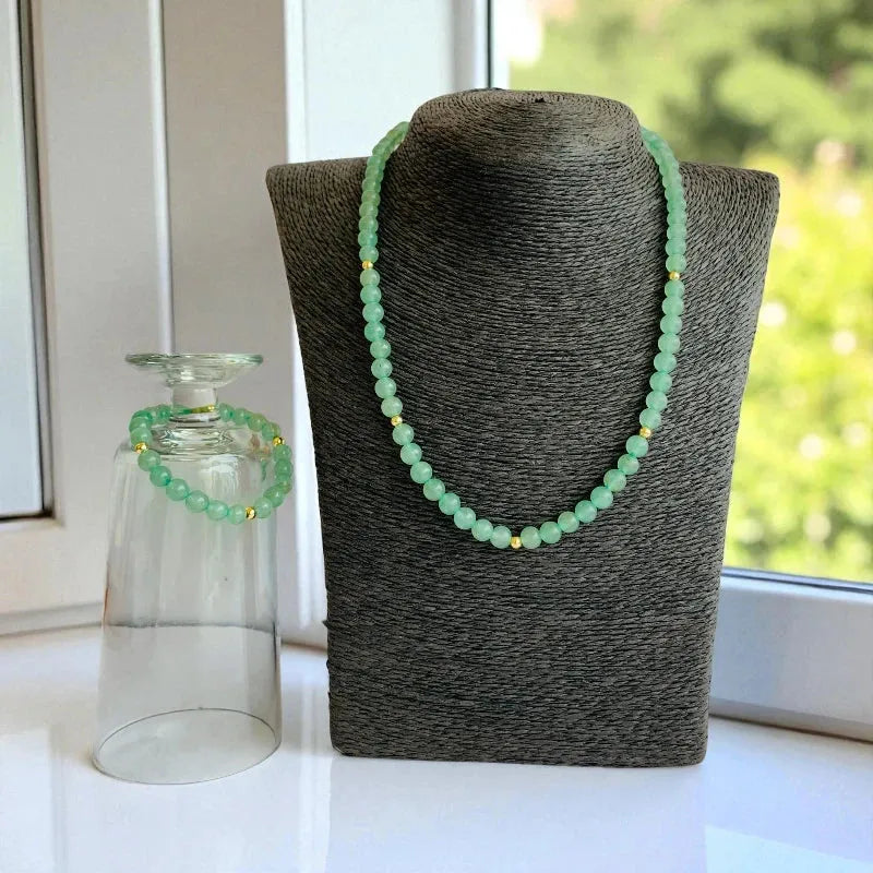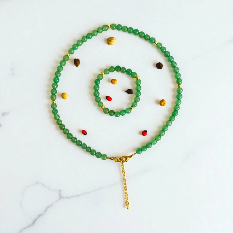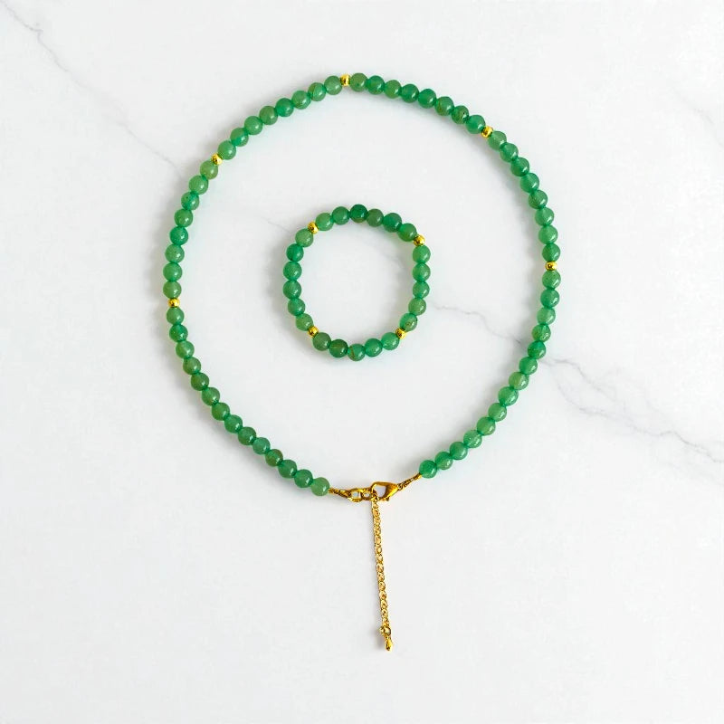 Luck Aventurine Set | Green Aventurine - For Kids Girls | Includes: Necklace & Bracelet