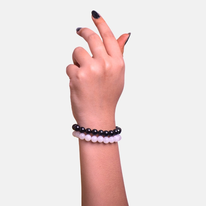 Lunar Shield Duo | Moonstone & Black Obsidian Stones – For Women | Includes: Bracelet (Set of 2)
