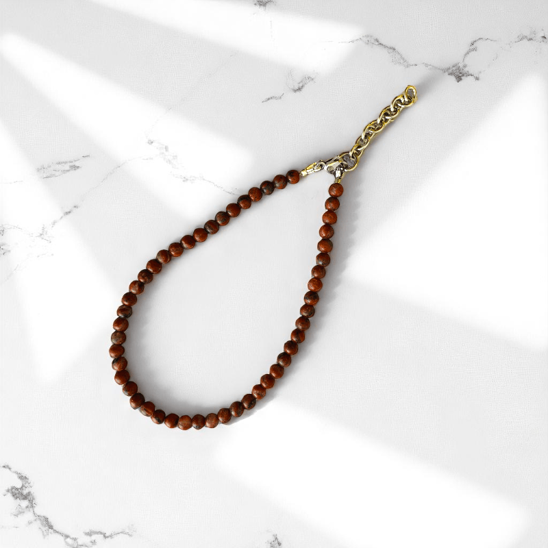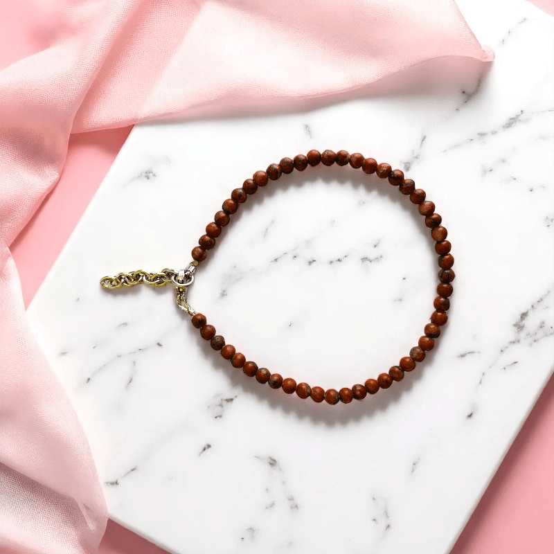 - Step into your power with the Mahogany Obsidian Stone Anklet, a striking accessory crafted for women who love earthy elegance with a hint of boldness.
