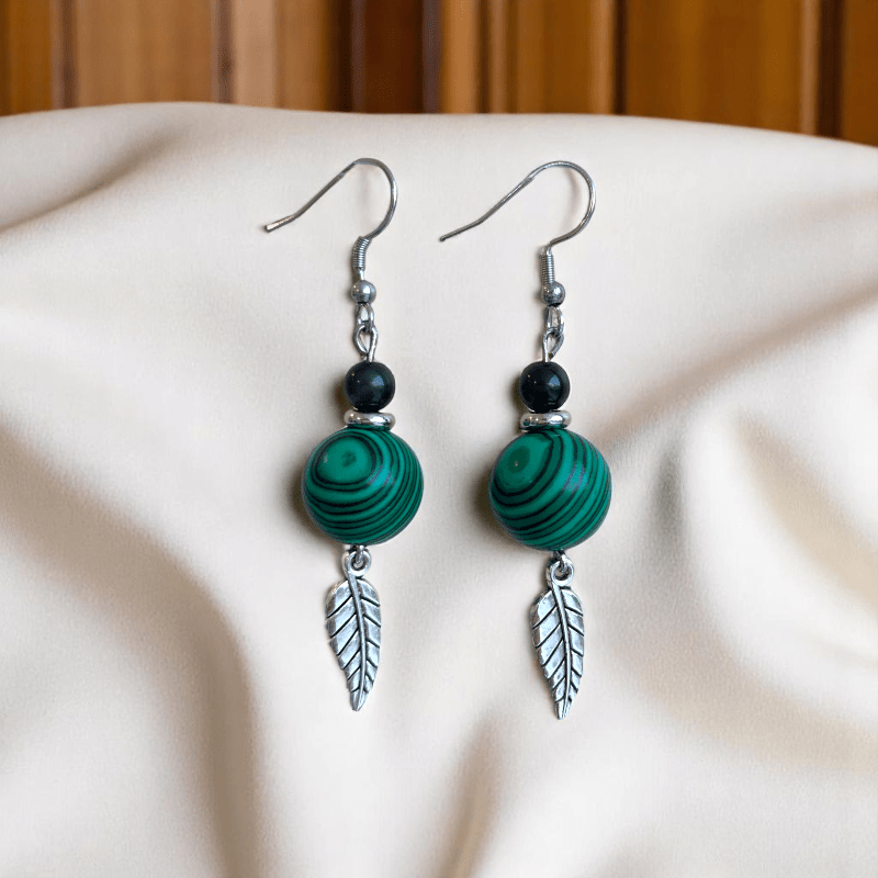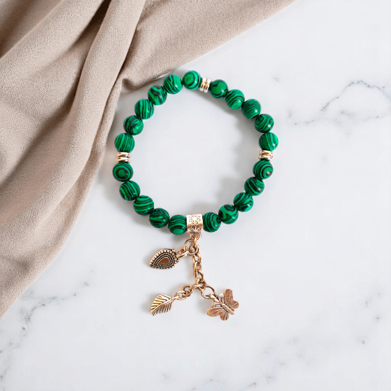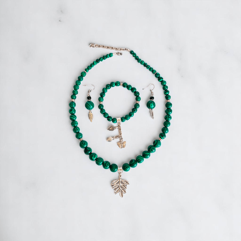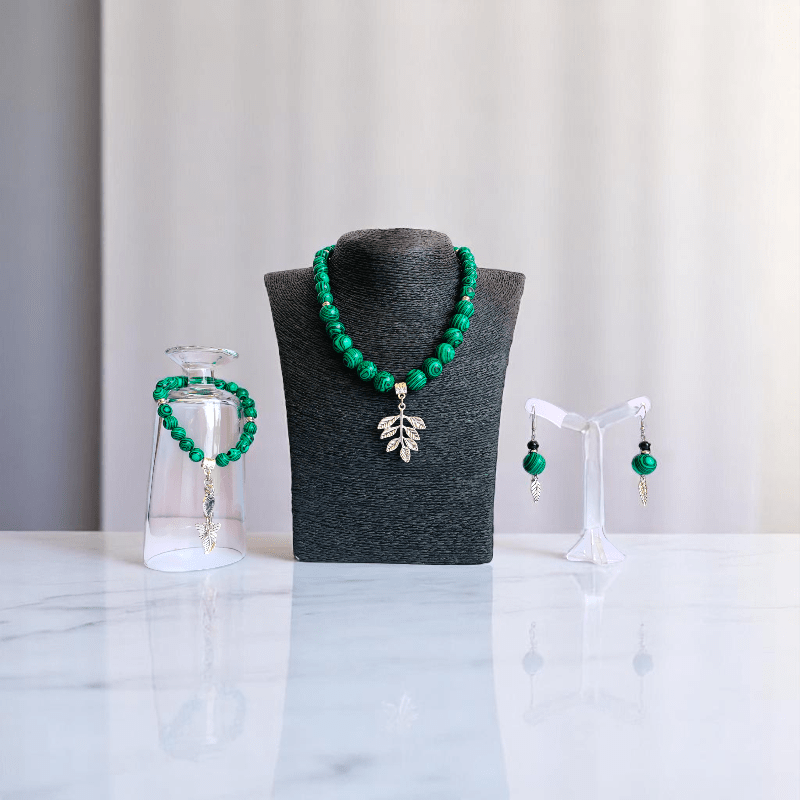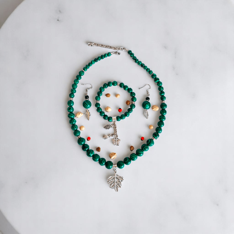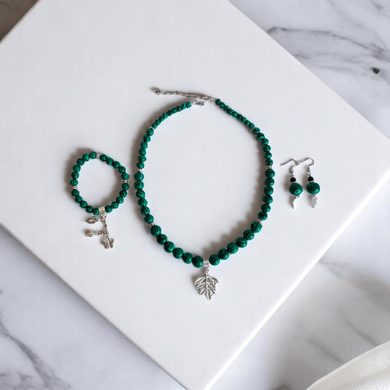 WildLeaf Charm Set | Malachite Stone - For Women | Includes: Necklace, Bracelet, Earring