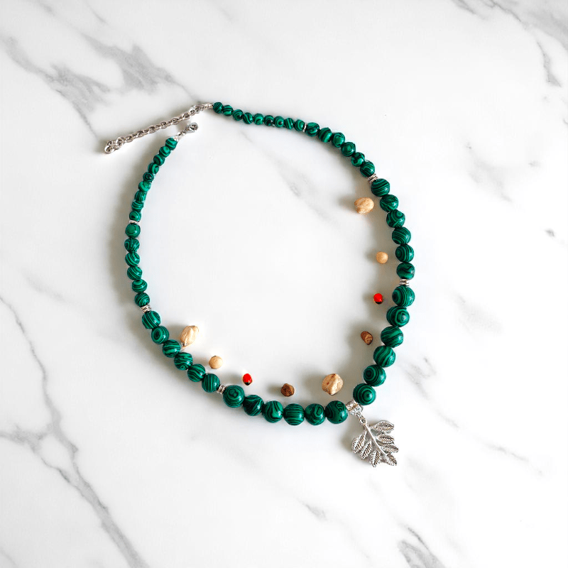 - This Malachite Jade Stone Jewelry Necklace, a stunning ensemble that brings together elegance, harmony, and timeless style.