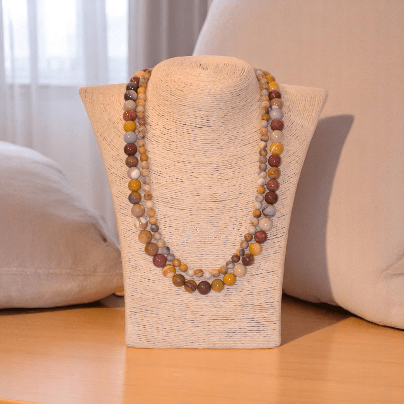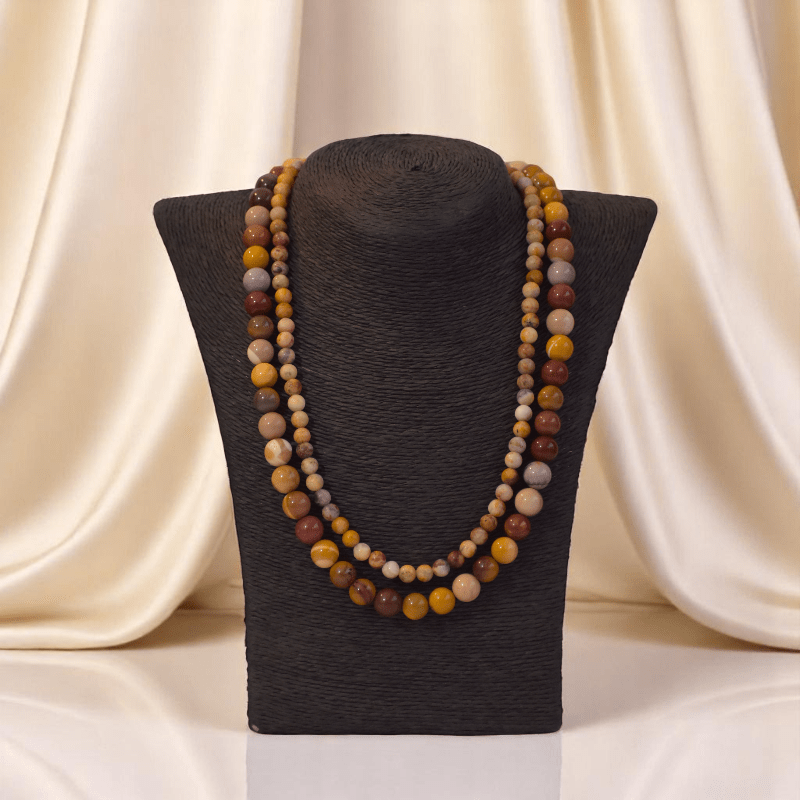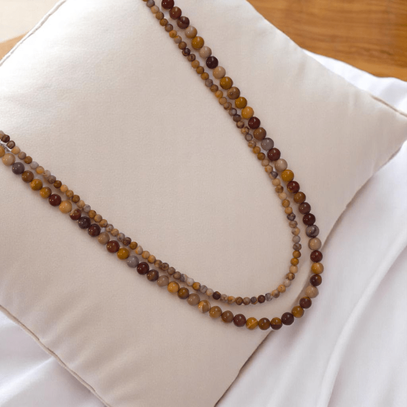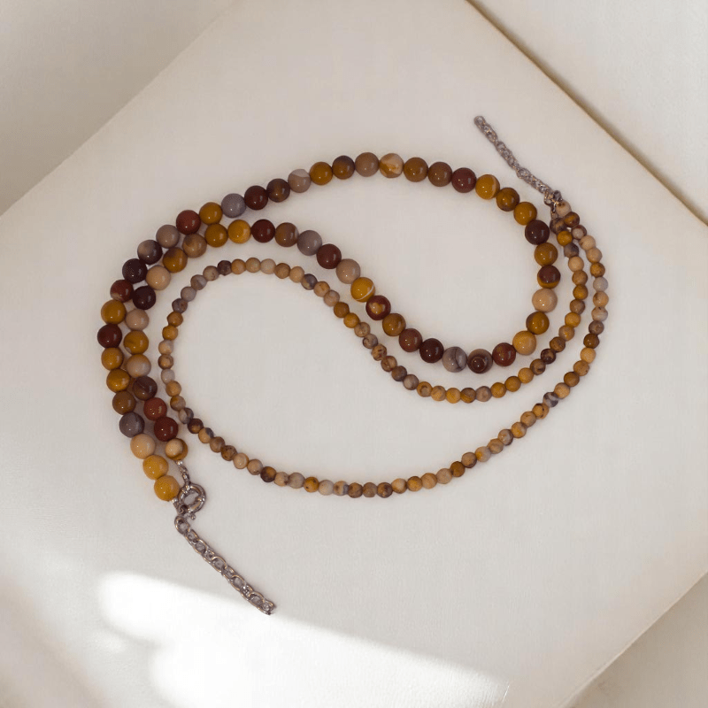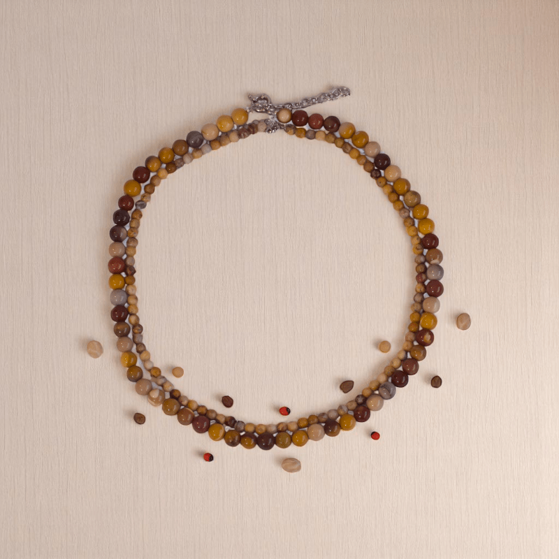 - Mookaite Jasper Stone Double Layer Necklace radiates confidence, vitality, and grounding energy.