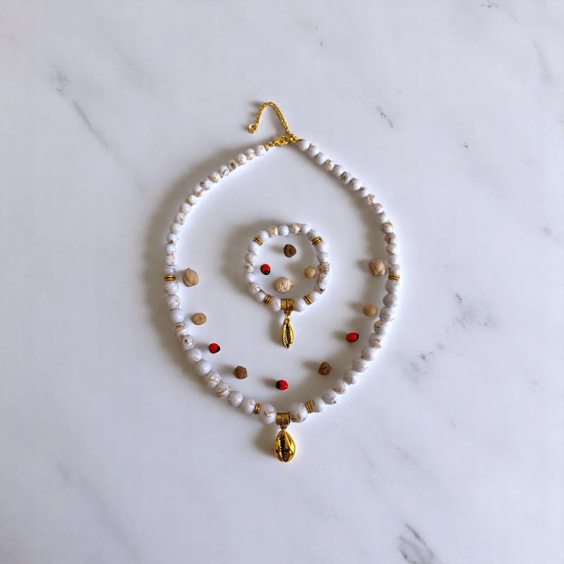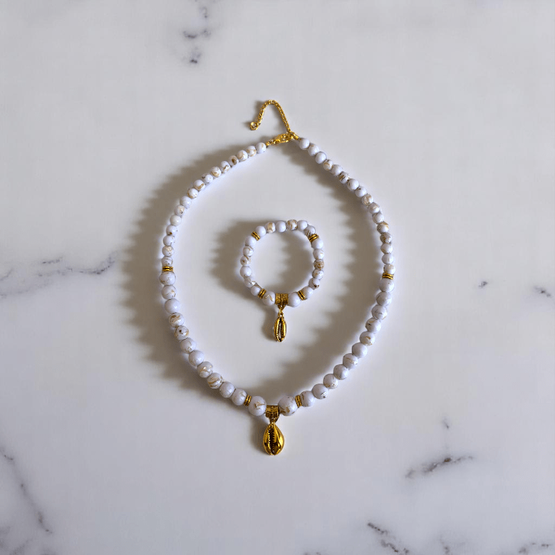 Ocean Whisper Set | Mother of Pearl Stone - For Women | Includes: Necklace, Bracelet